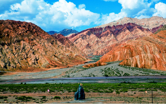 天山、昆仑山山脉在帕米尔高原上交汇,此交汇处地理特征明显。天山山脉在此处呈驼色,东西走向,分隔准噶尔、塔里木两大盆地,是亚洲高大山系之一,平均海拔4000米以上;昆仑山山脉在此处呈黛色,西起帕米尔高原,平均海拔5500米以上。在这里,可以眼望两山,脚踏两地的欣赏世界级山系独特风貌,感受“万山博物园”,体验轰轰烈烈的造山运动,属世界级自然奇观。