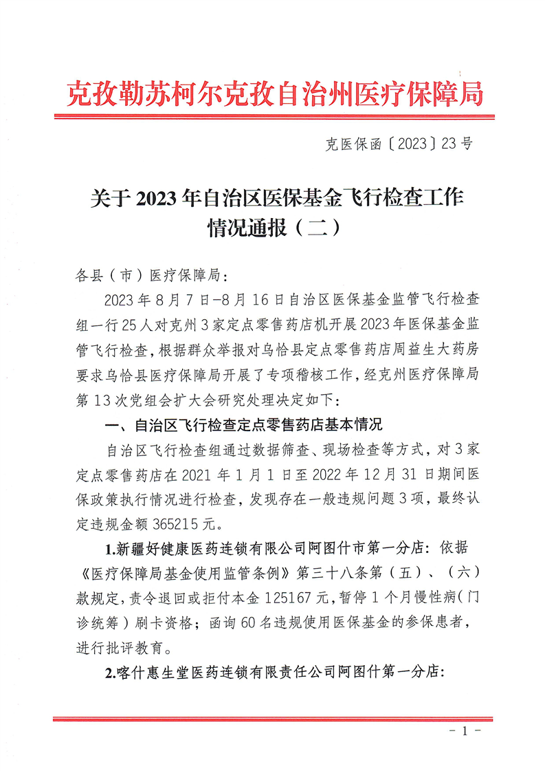 关于2023年自治区医保基金飞行检查工作情况通报(二)