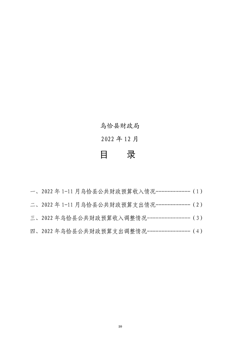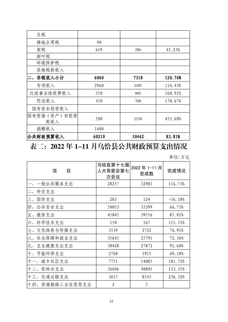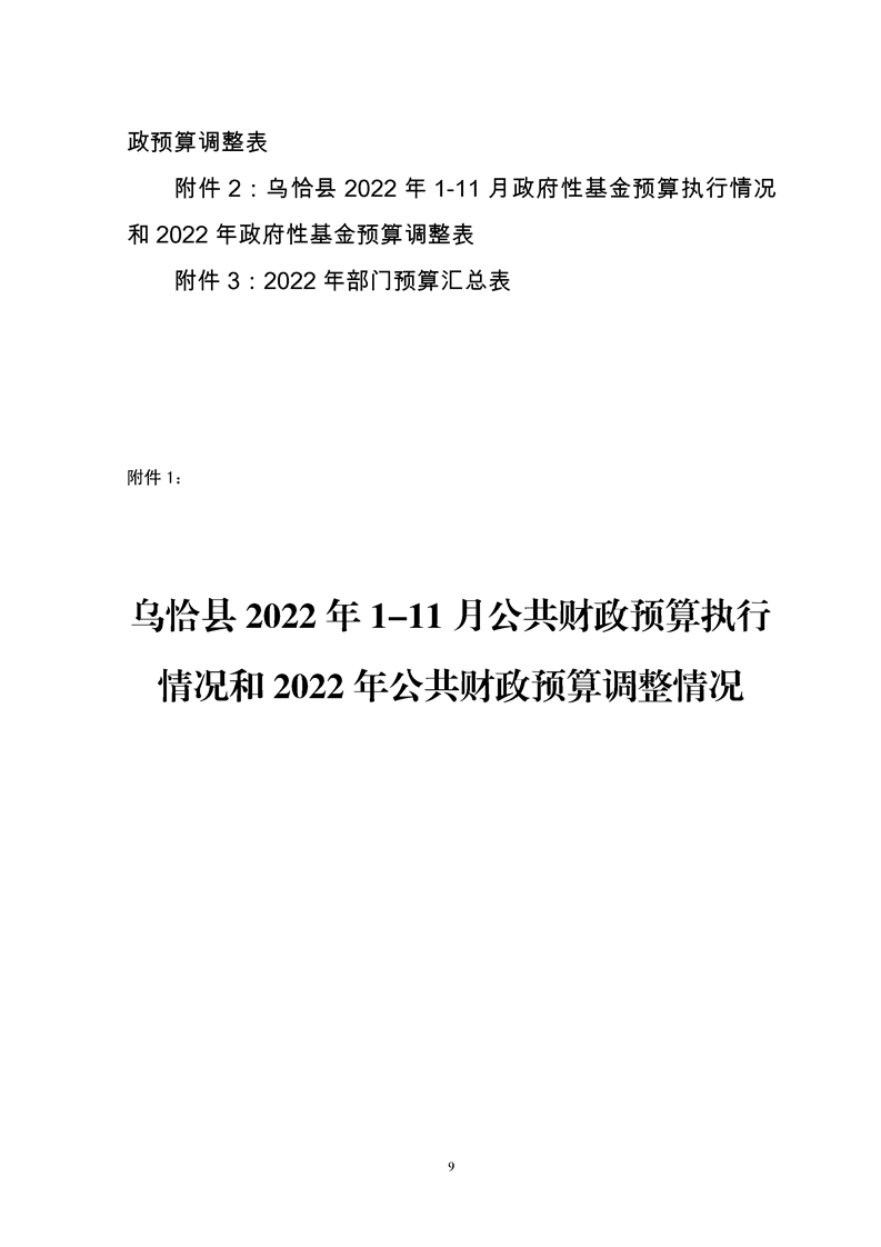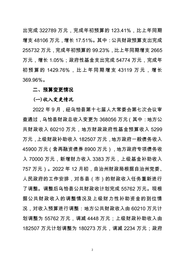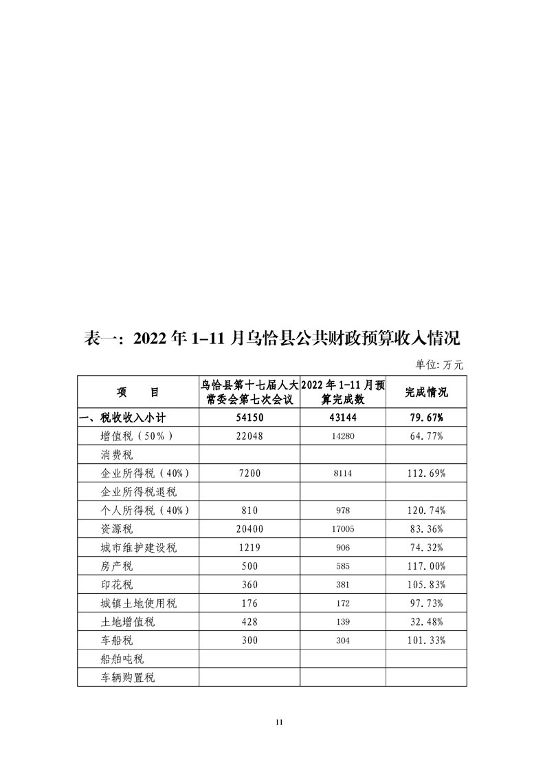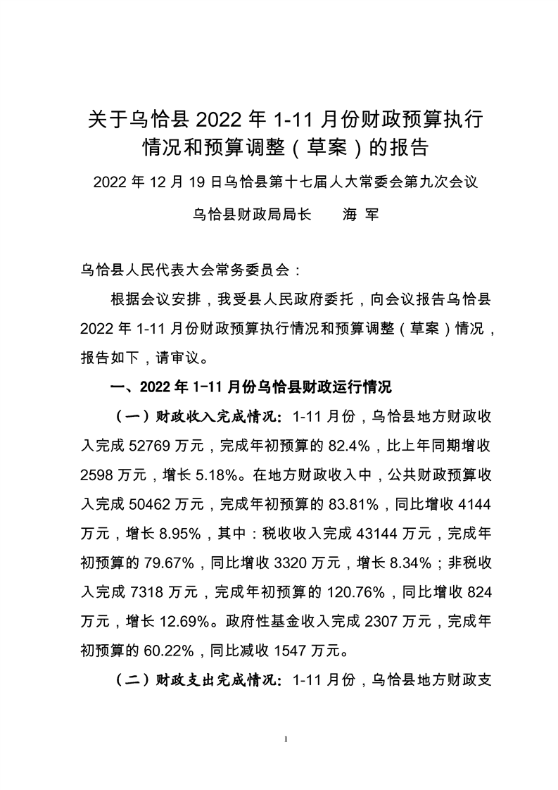 关于乌恰县2022年1-11月份财政预算执行情况和预算调整(草案)的报告