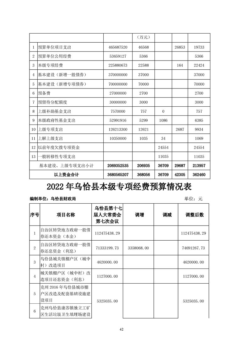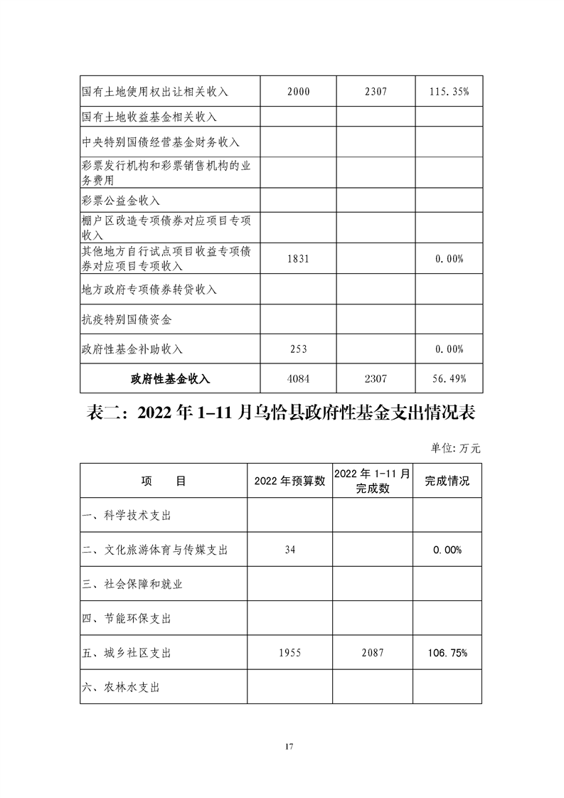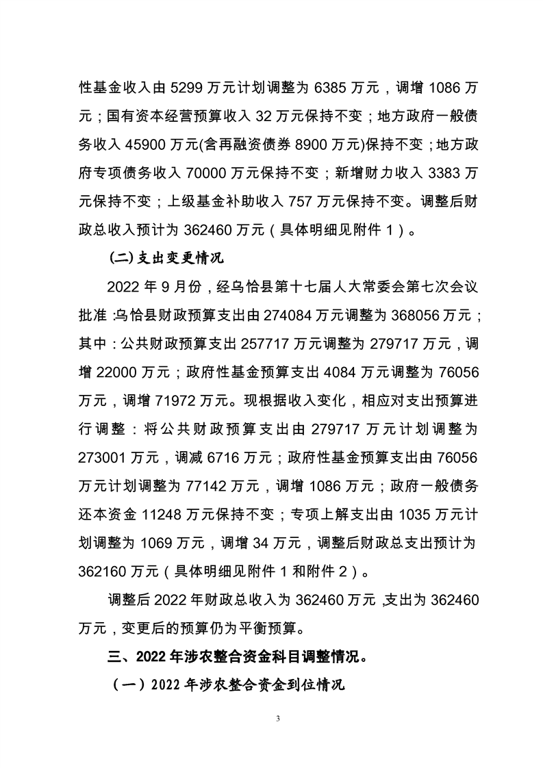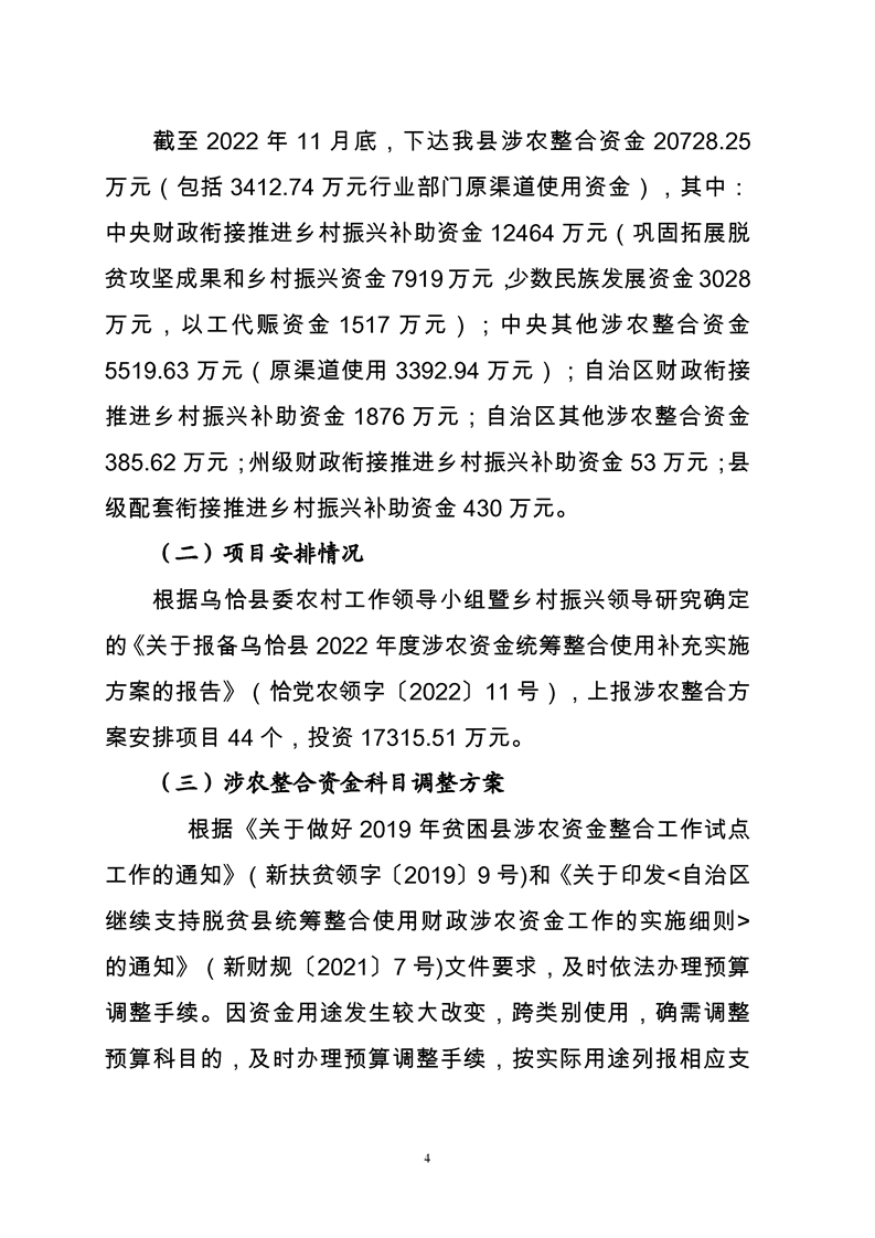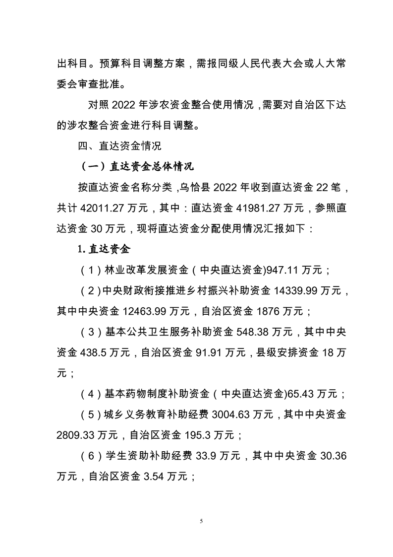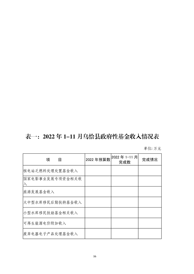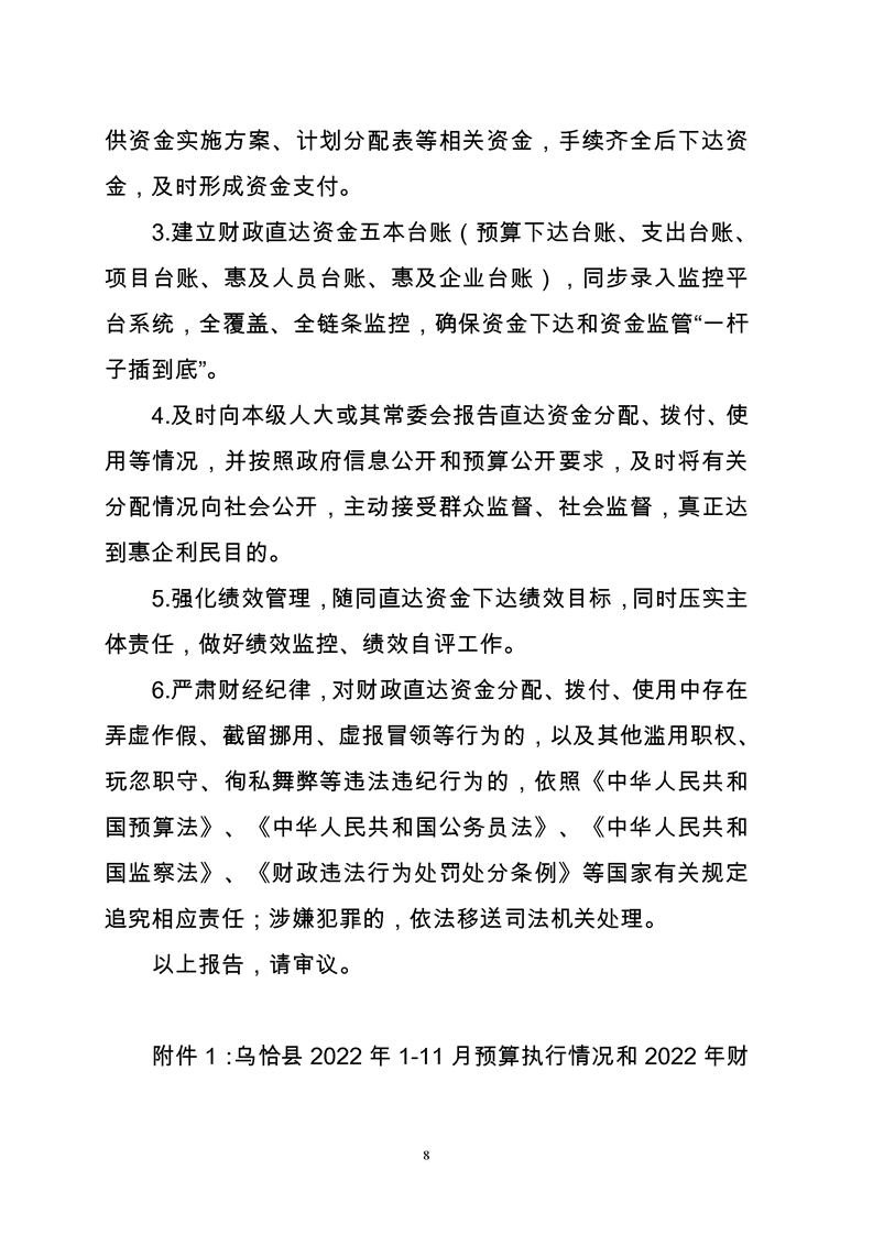 关于乌恰县2022年1-11月份财政预算执行情况和预算调整(草案)的报告
