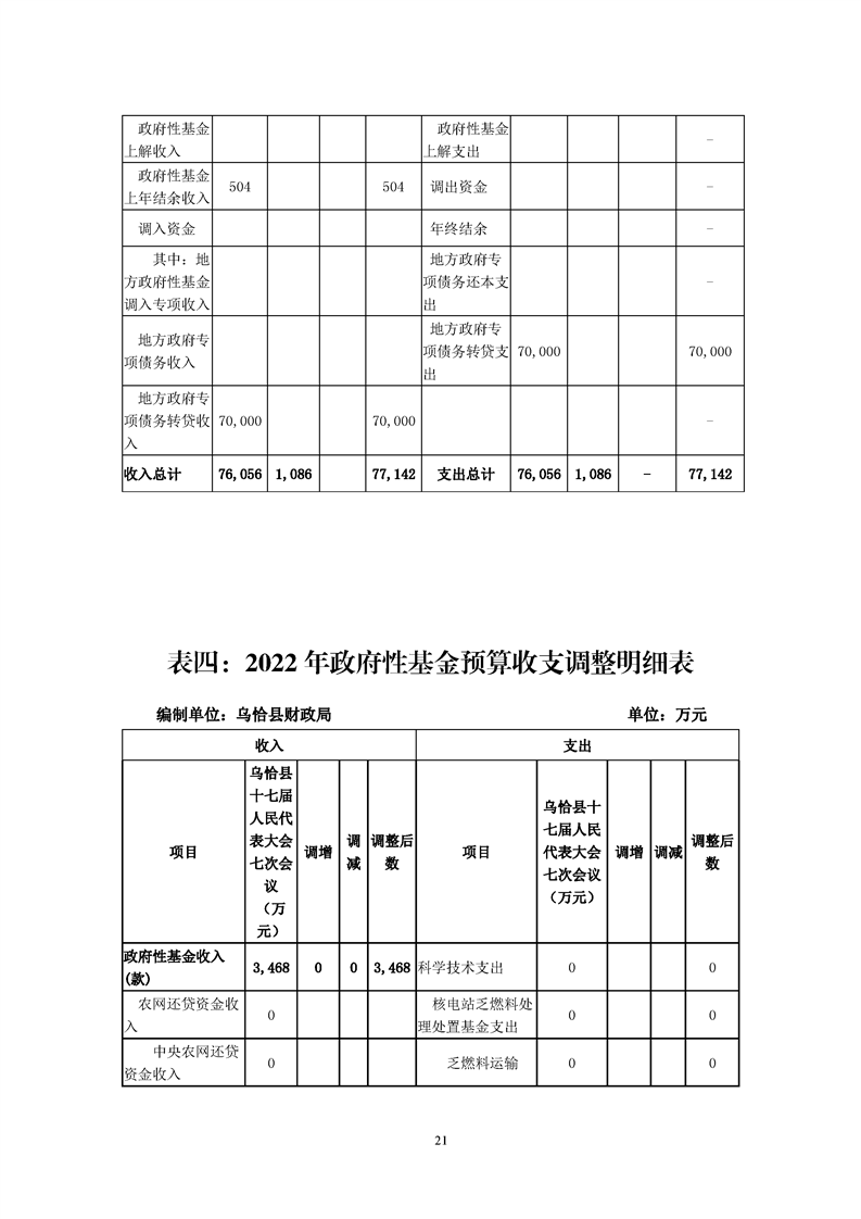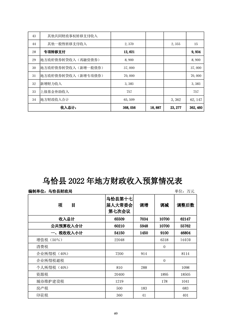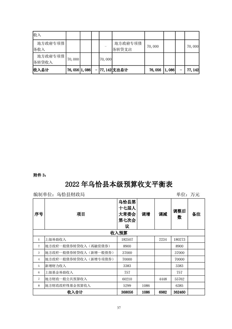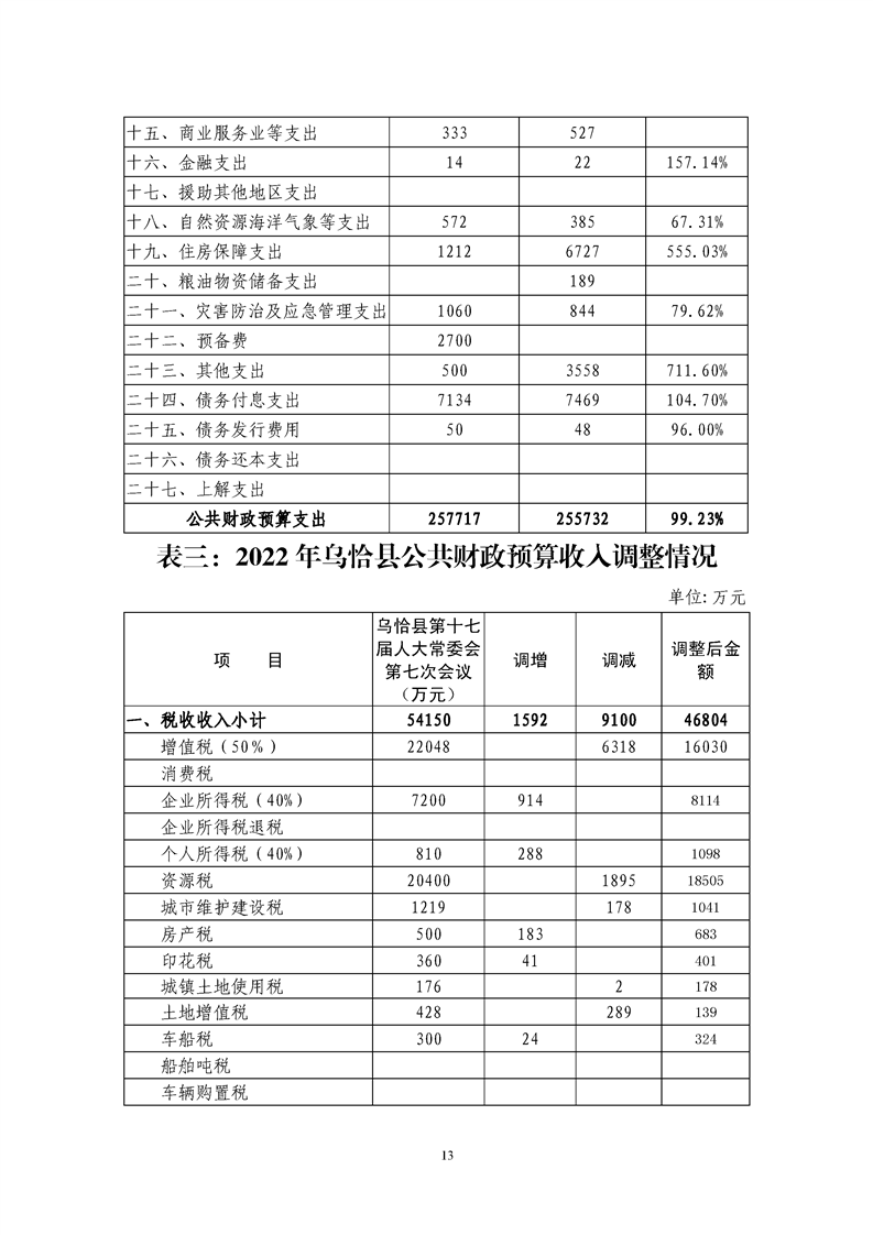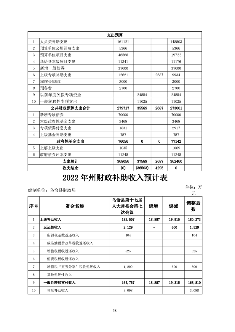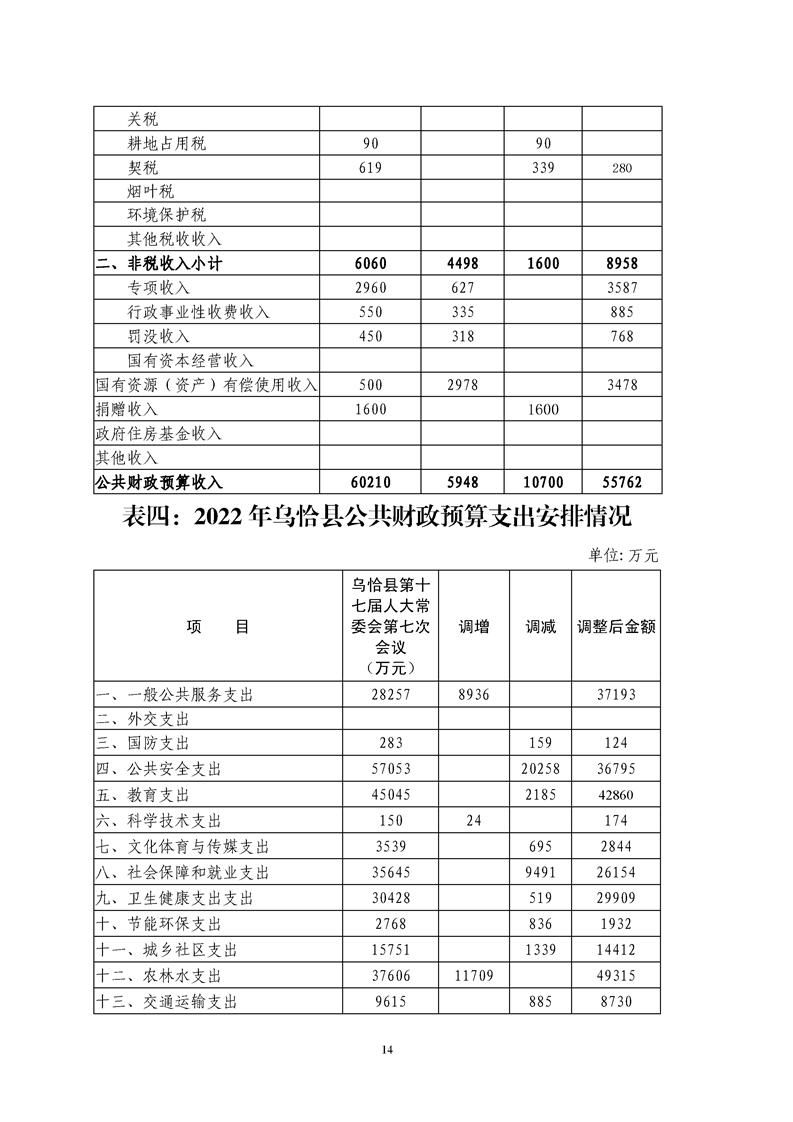 关于乌恰县2022年1-11月份财政预算执行情况和预算调整(草案)的报告