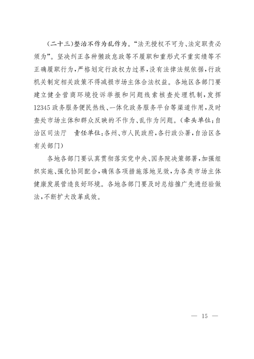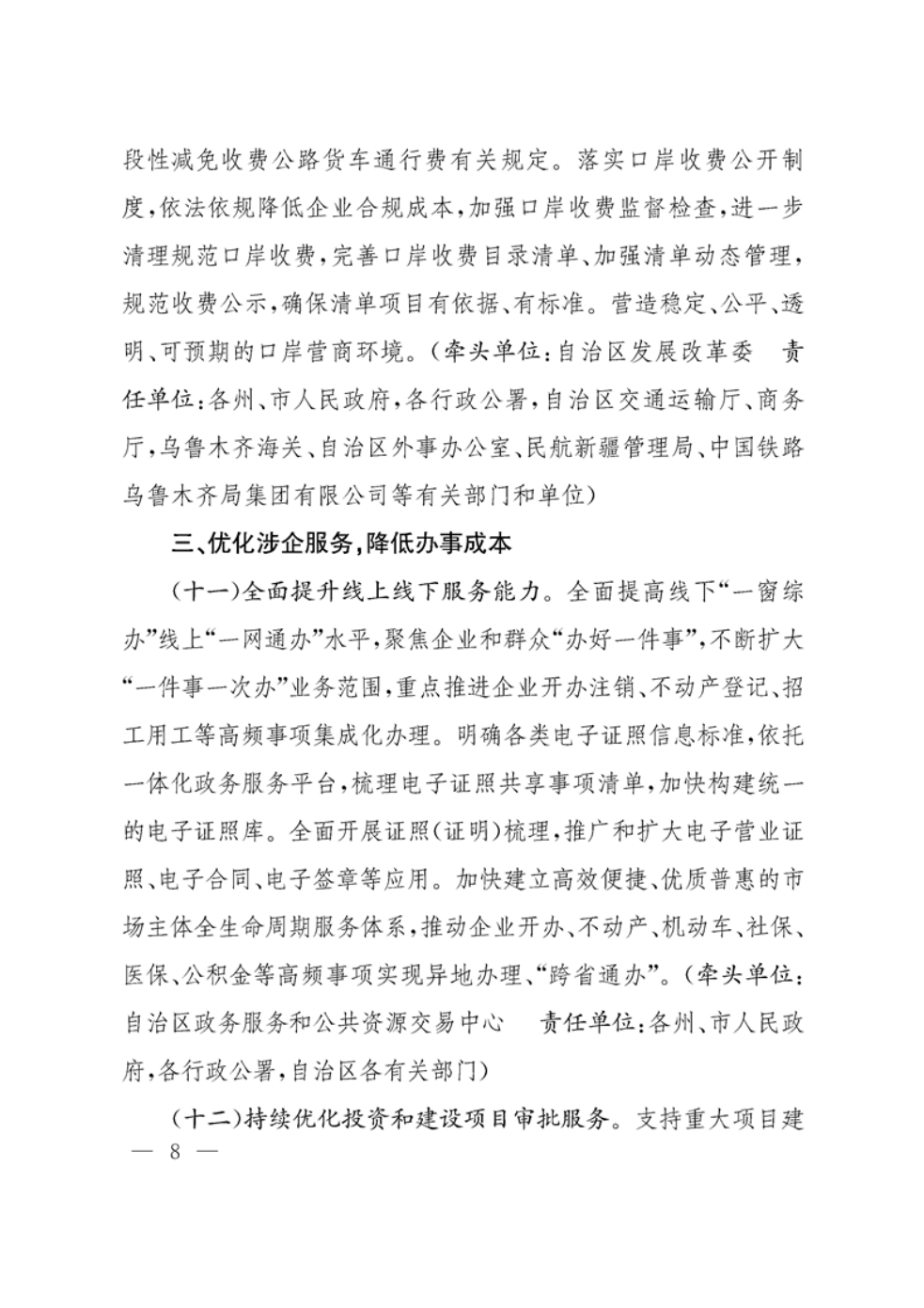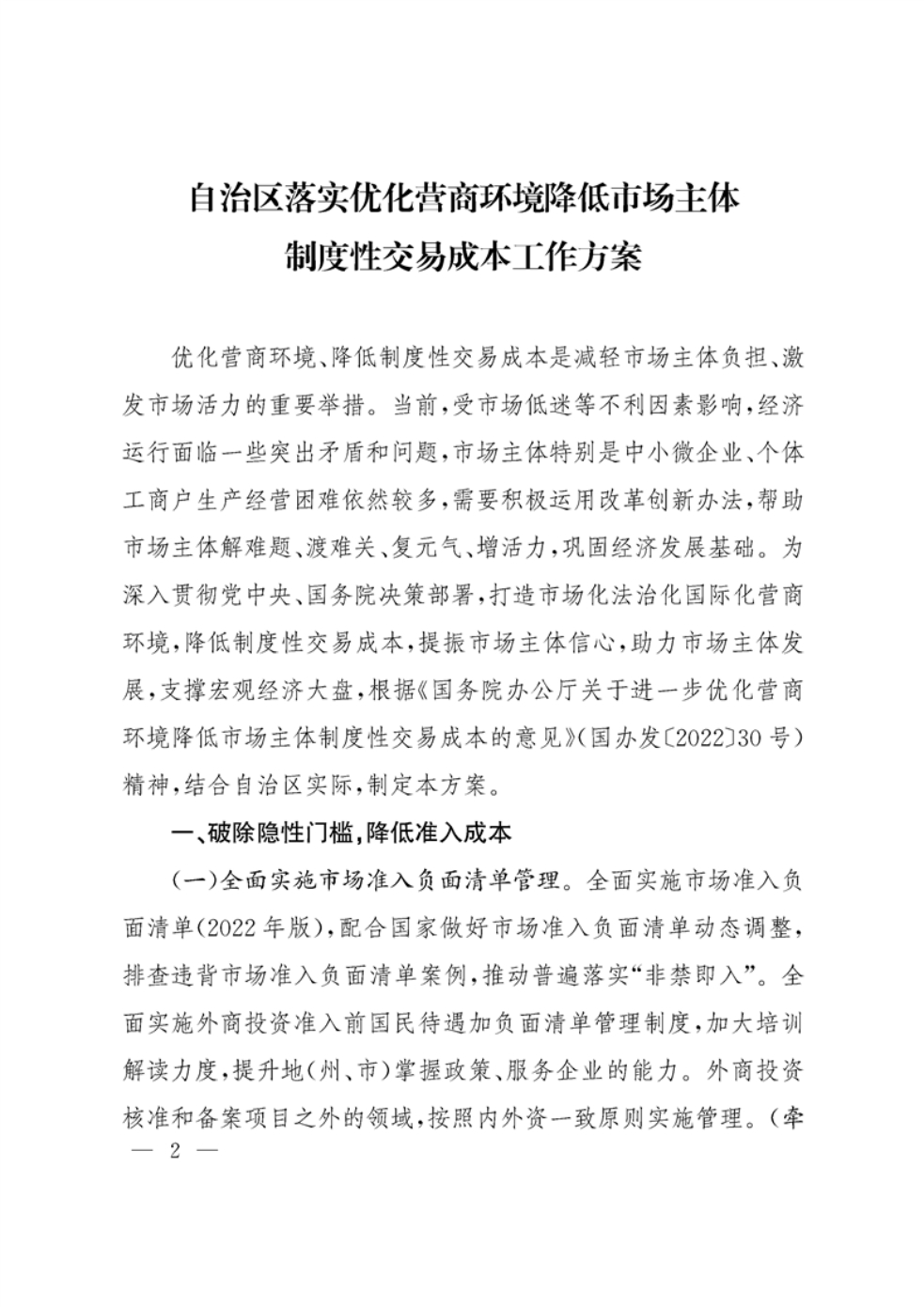【自治区】关于印发自治区落实优化营商环境降低市场主体制度性交易成本工作方案的通知
