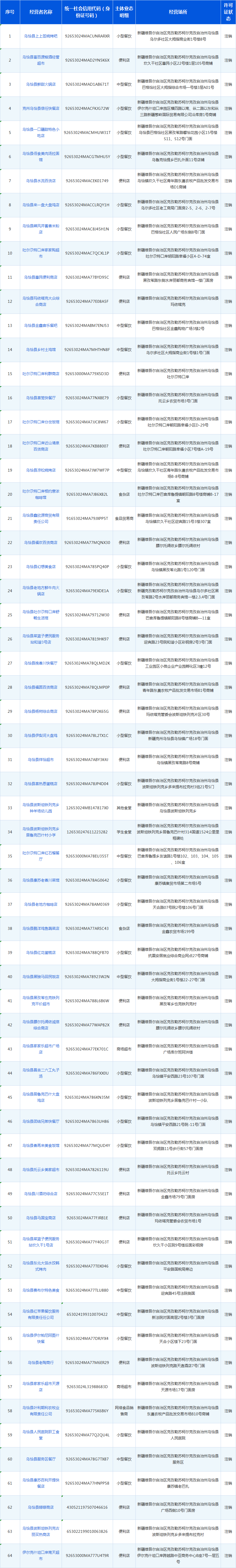 乌恰县市场监督管理局2024年第二季度食品经营企业注销名单