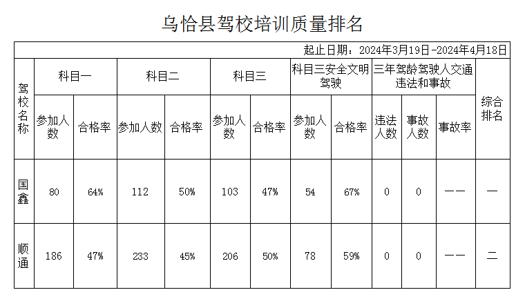 乌恰县驾培机构2024年4月份培训质量排名公示