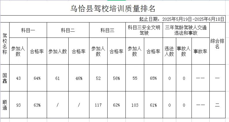 乌恰县驾培机构2025年6月份培训质量排名公示