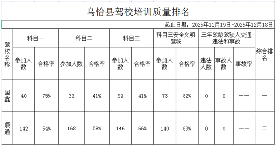 乌恰县驾培机构2025年12月份培训质量排名公示