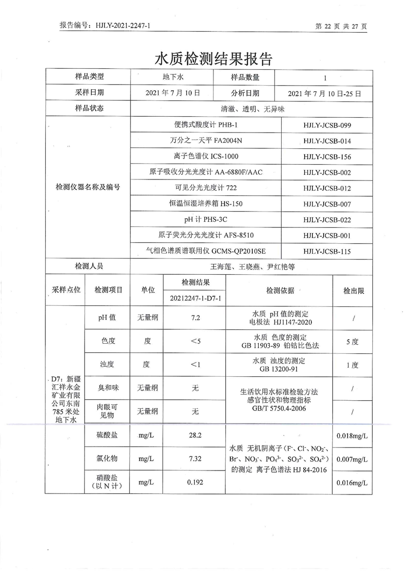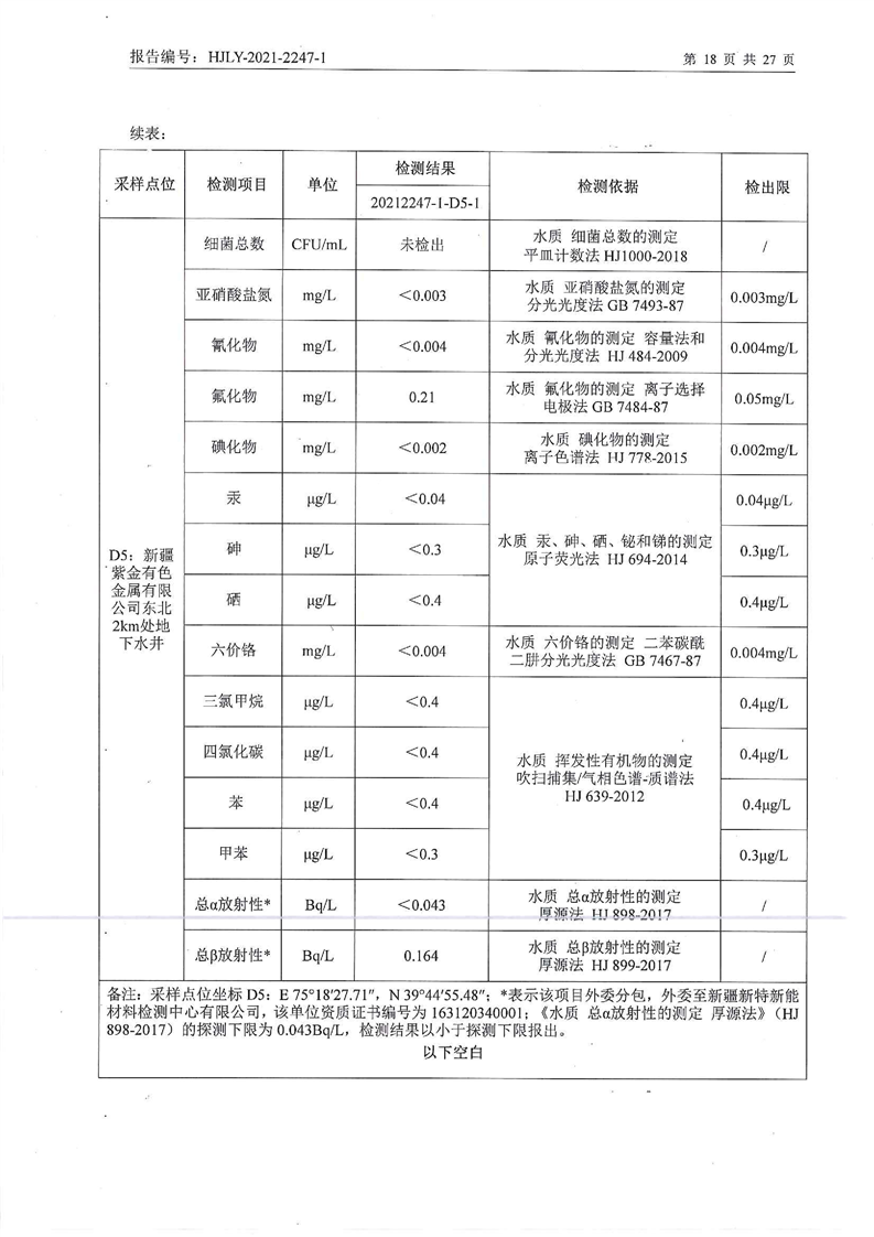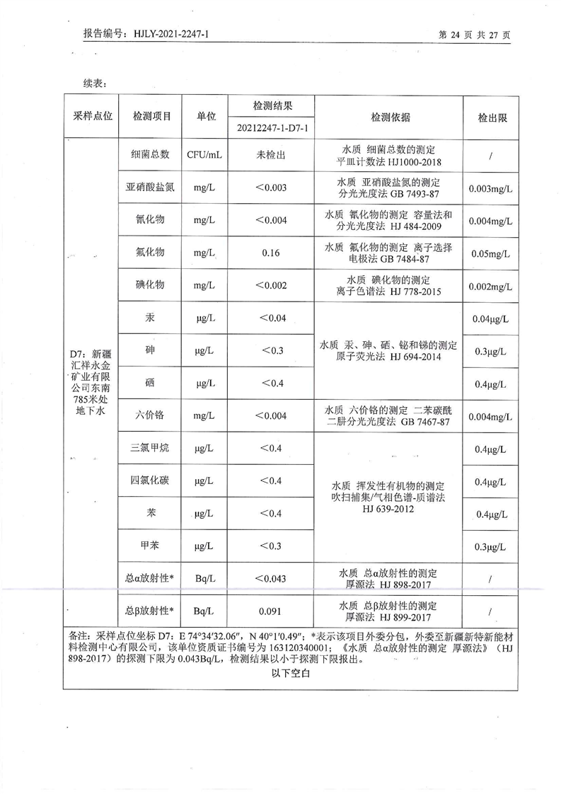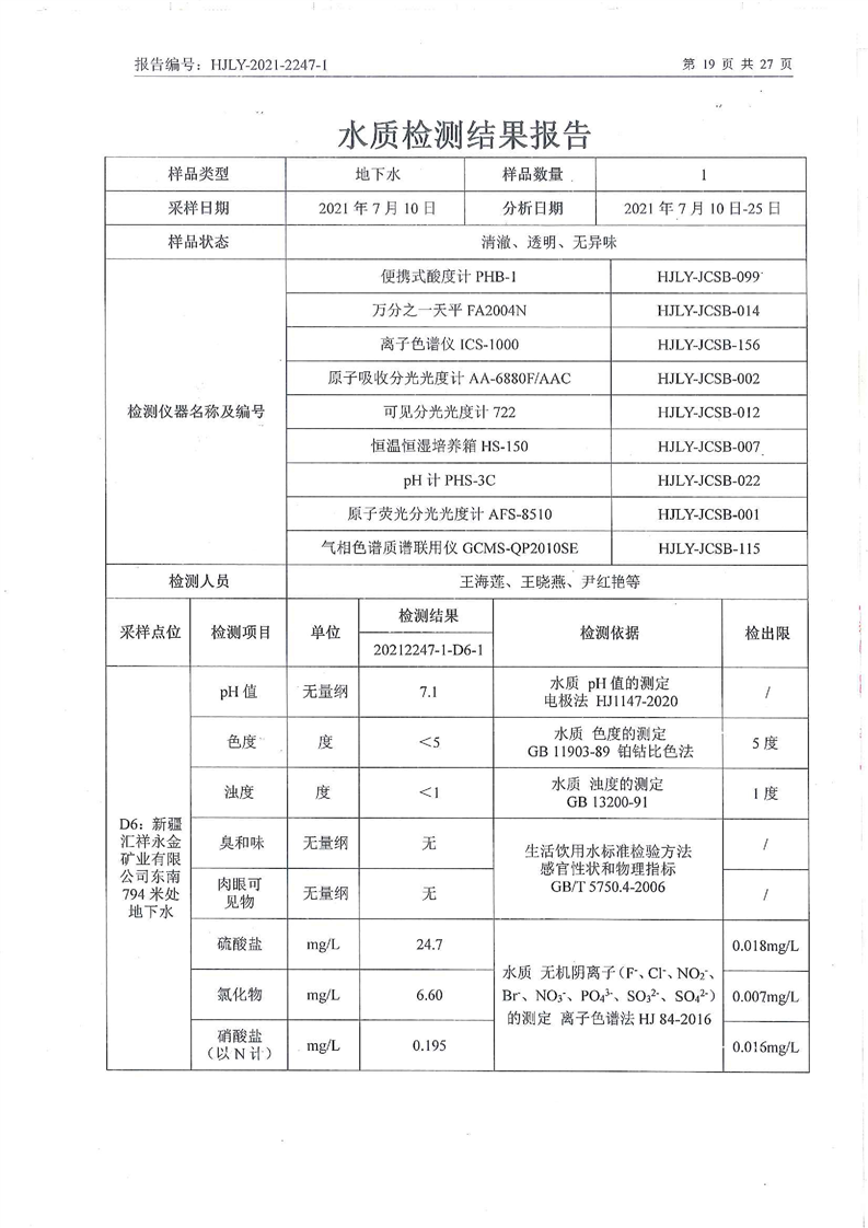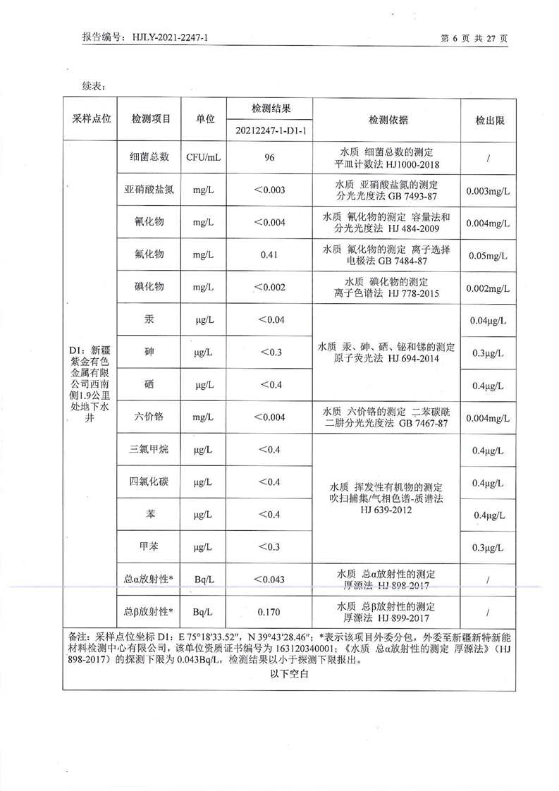 乌恰县紫金有色、汇祥永金有限公司地下水监测报告