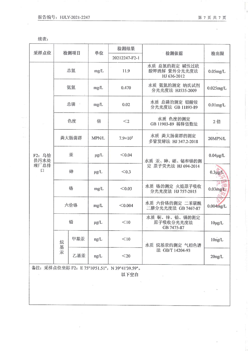 乌恰县2021年度重点污染源三季度乌恰县污水处理厂、工业园区污水处理厂监测报告
