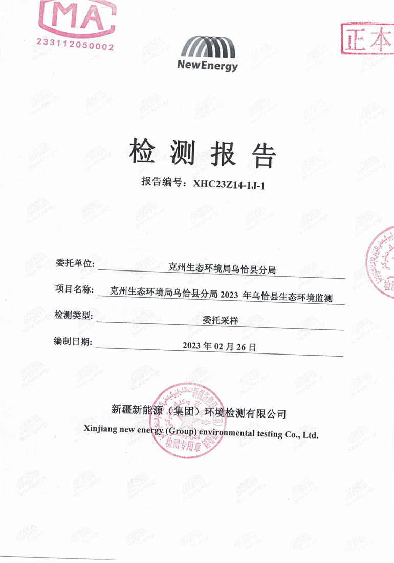 乌恰县第一季度污水处理厂污水检测报告