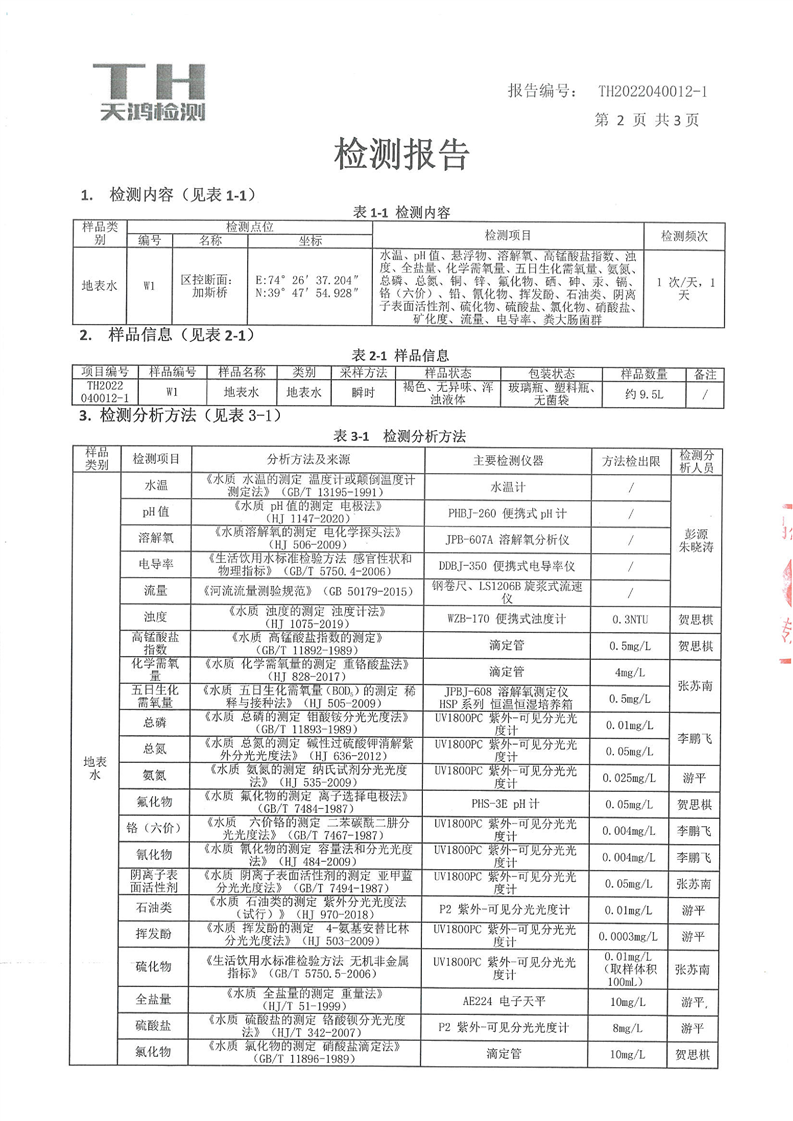 克孜河断面加斯桥4月份监测报告