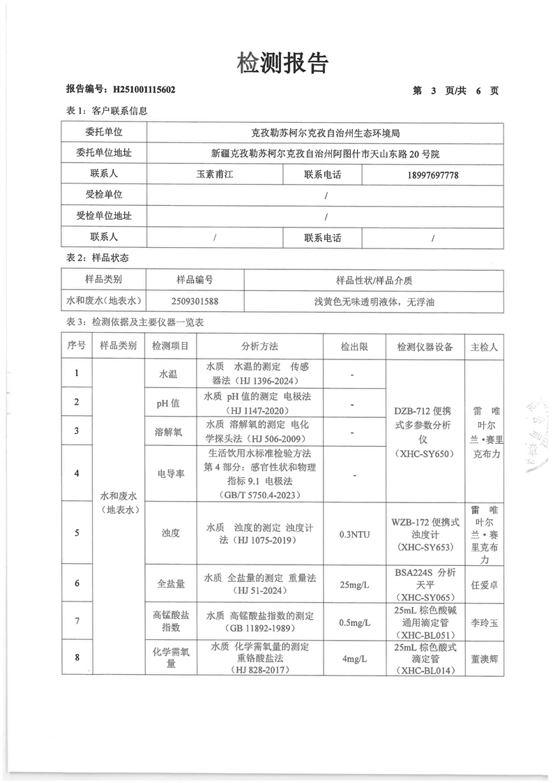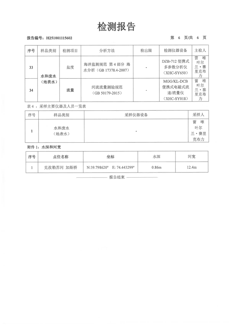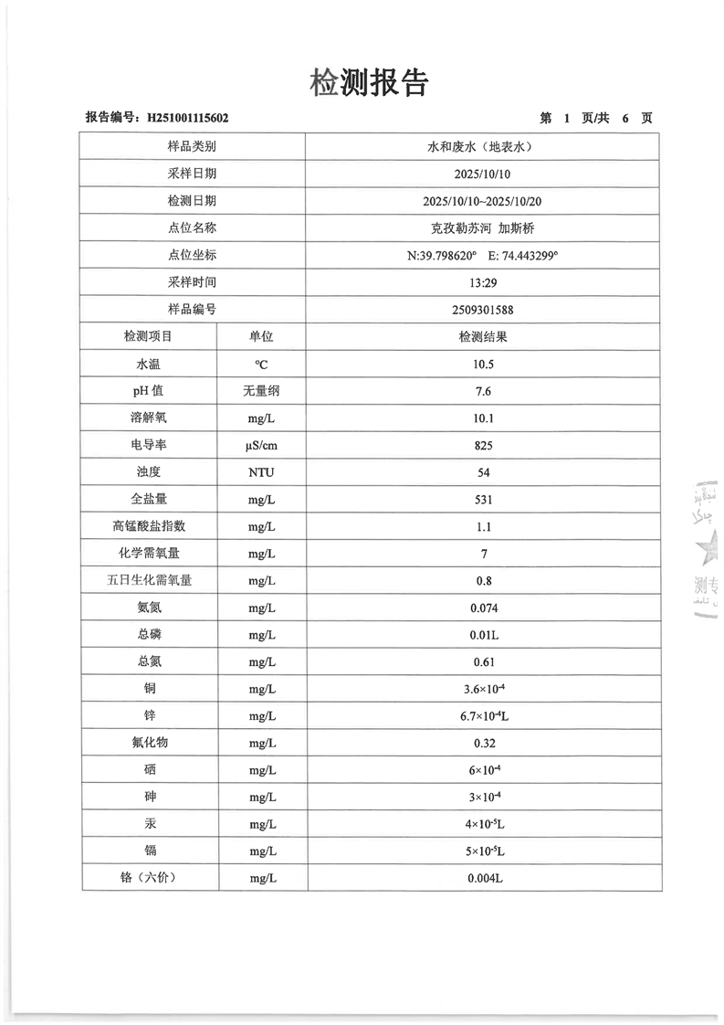 克孜勒苏河加斯桥10月地表检测报告
