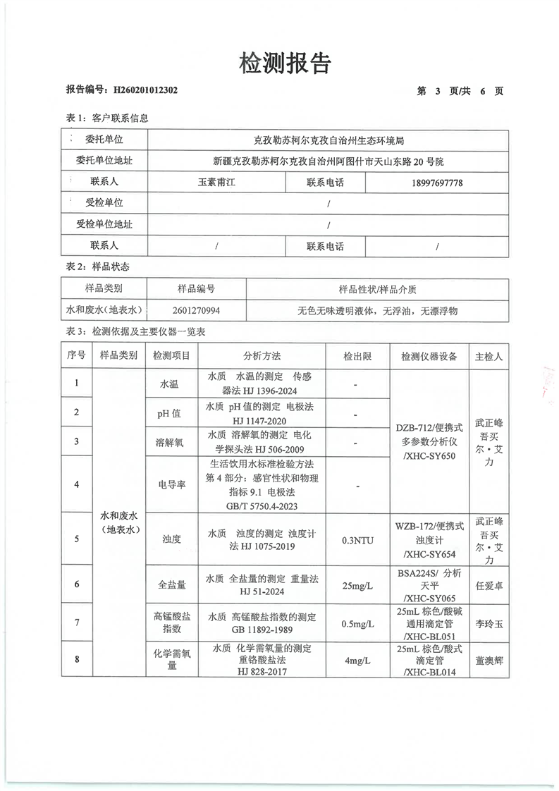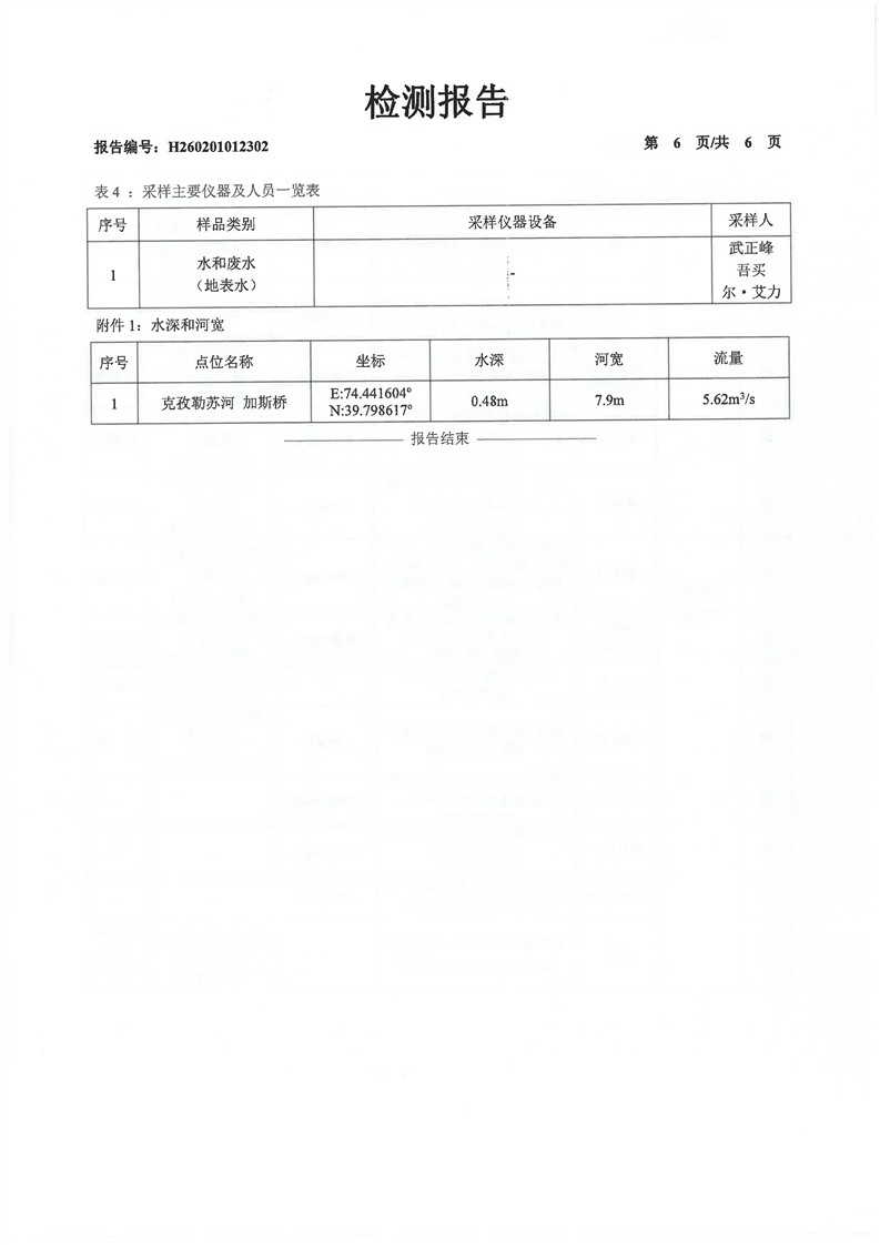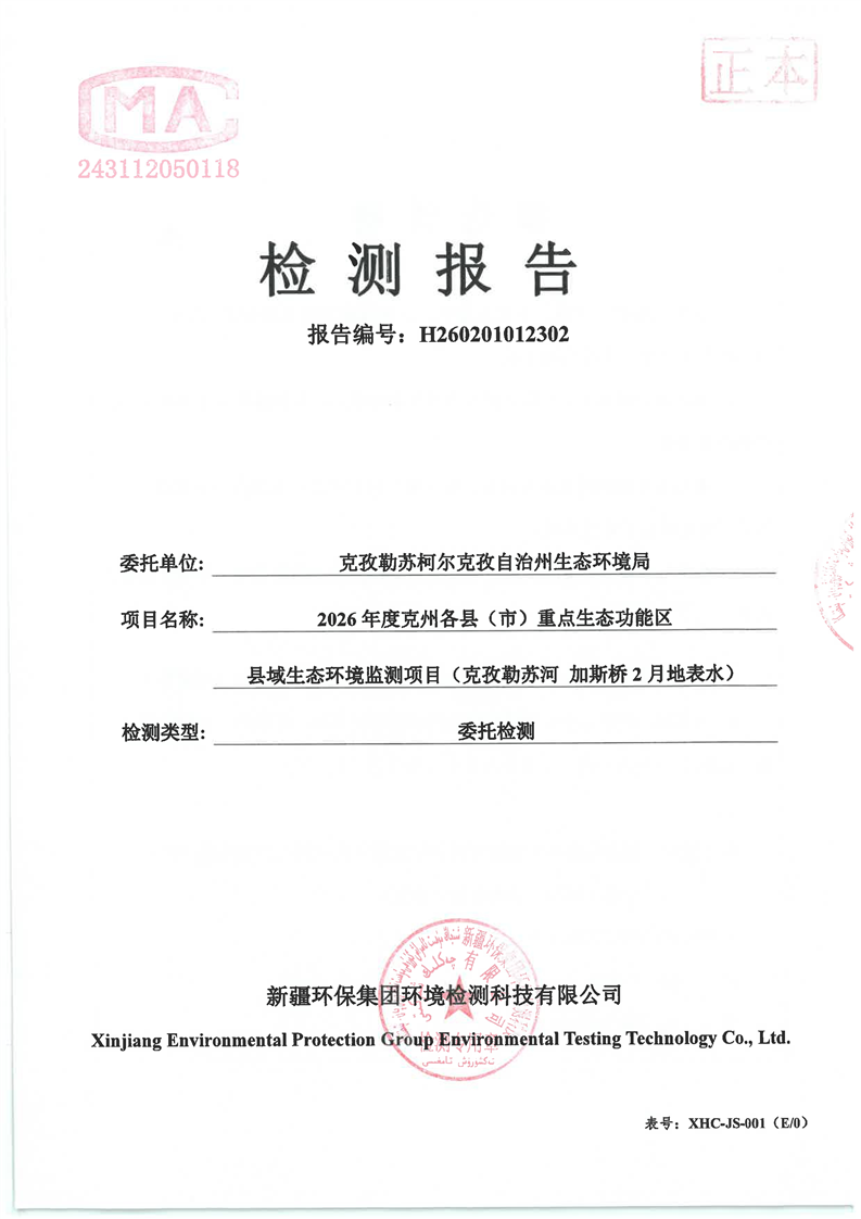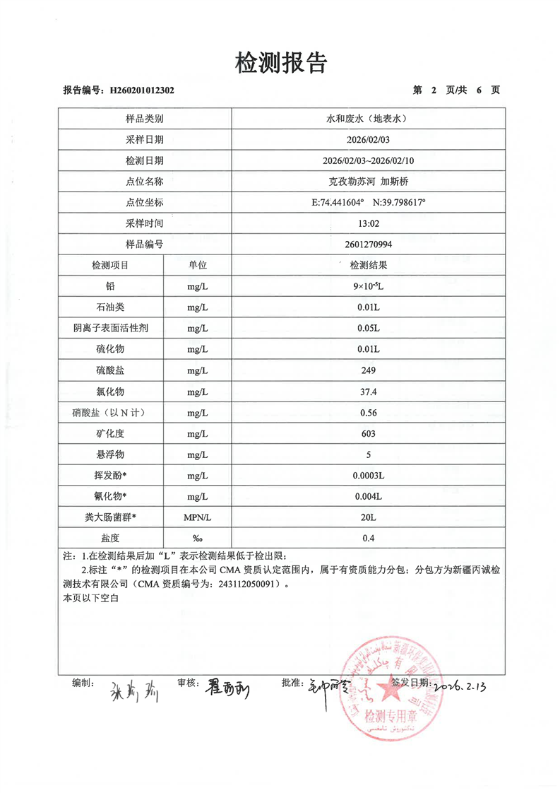 克孜勒苏河加斯大桥2026年2月水质检测报告