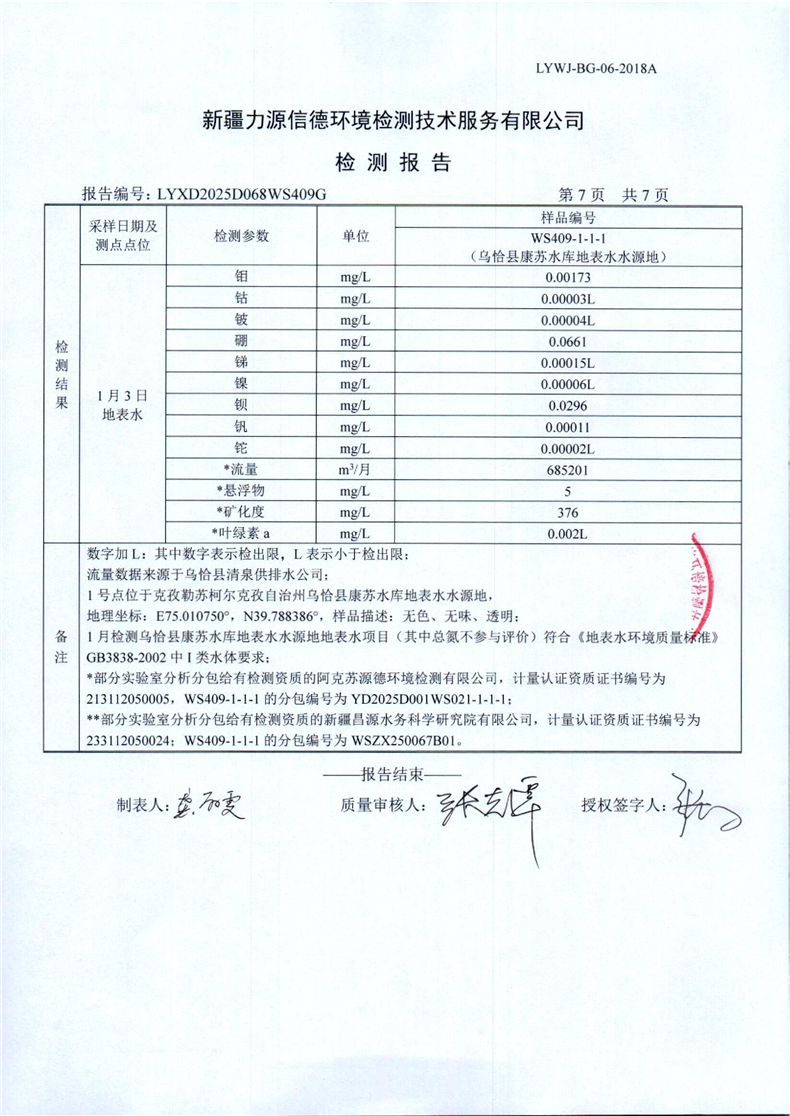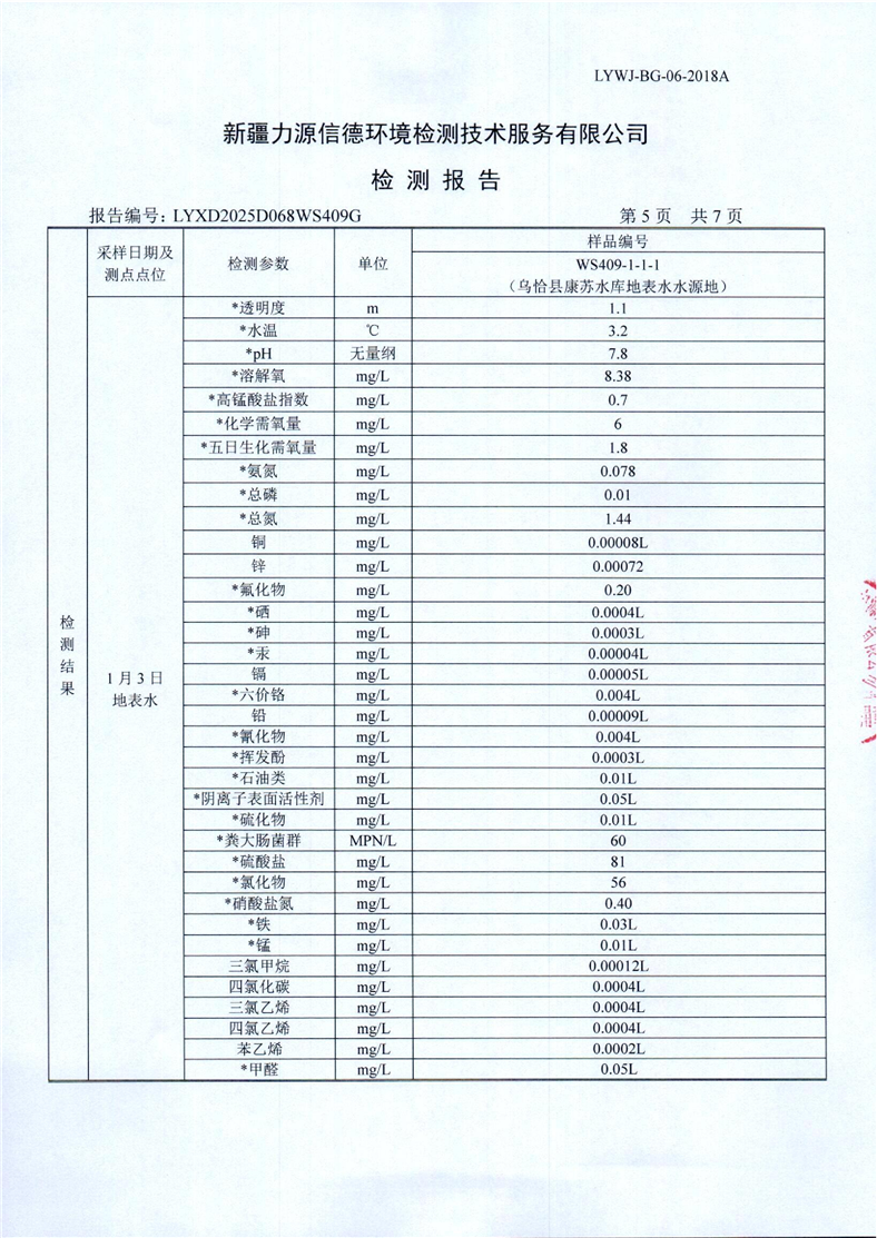 康苏水库地表水水源地第1季度监测报告