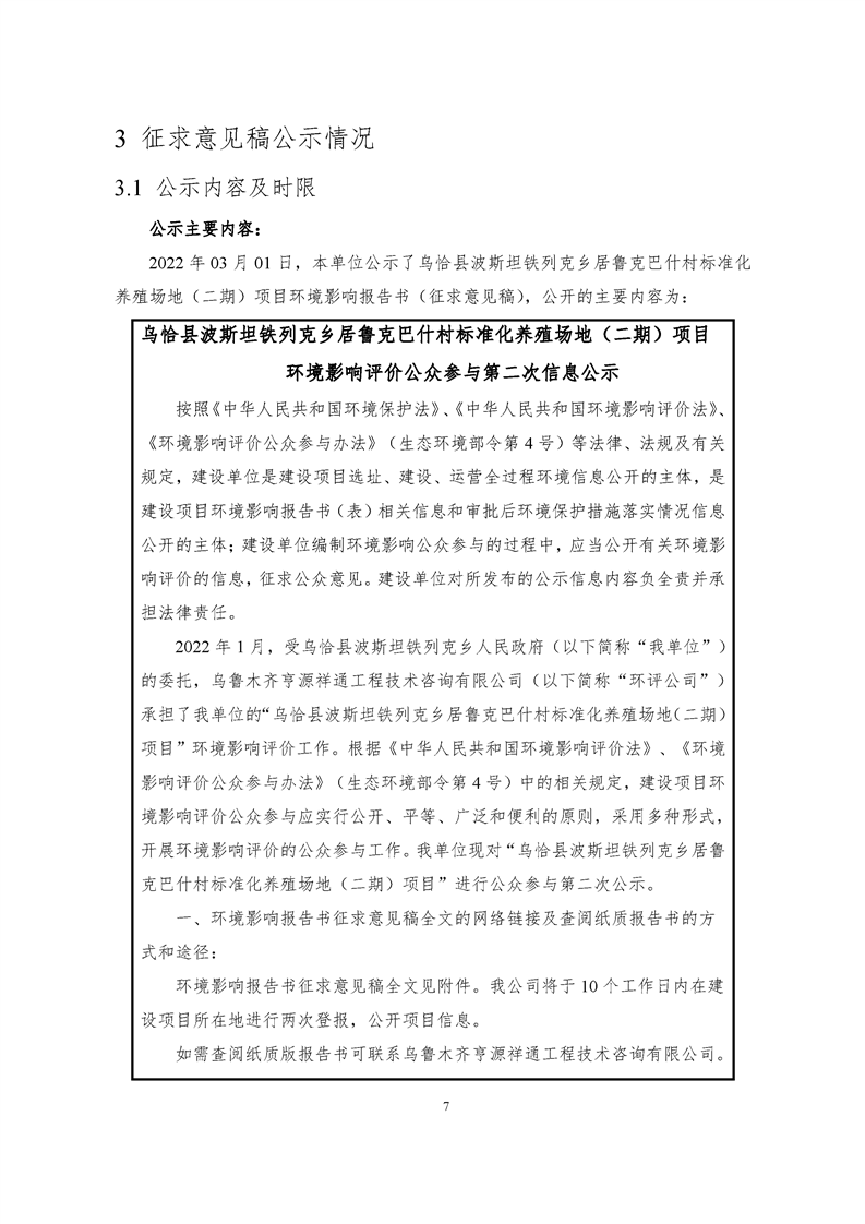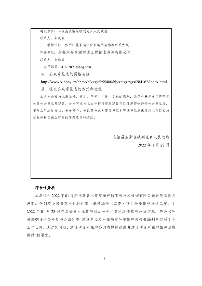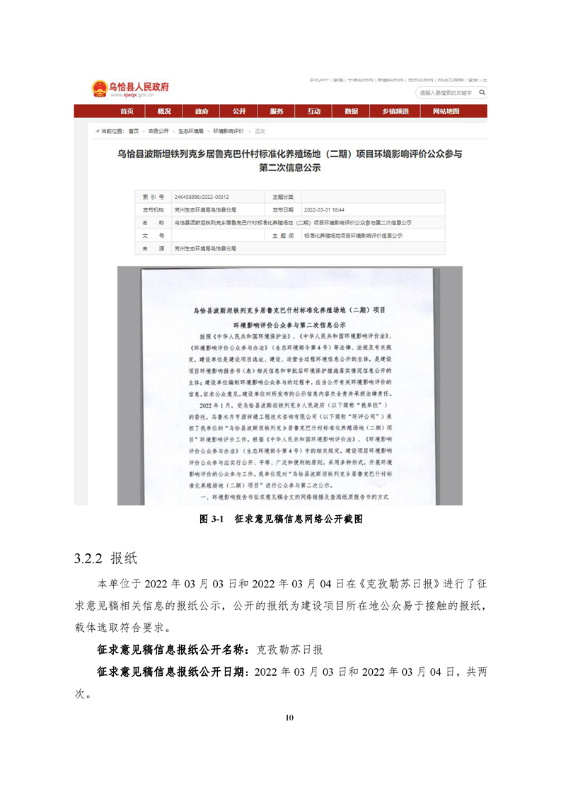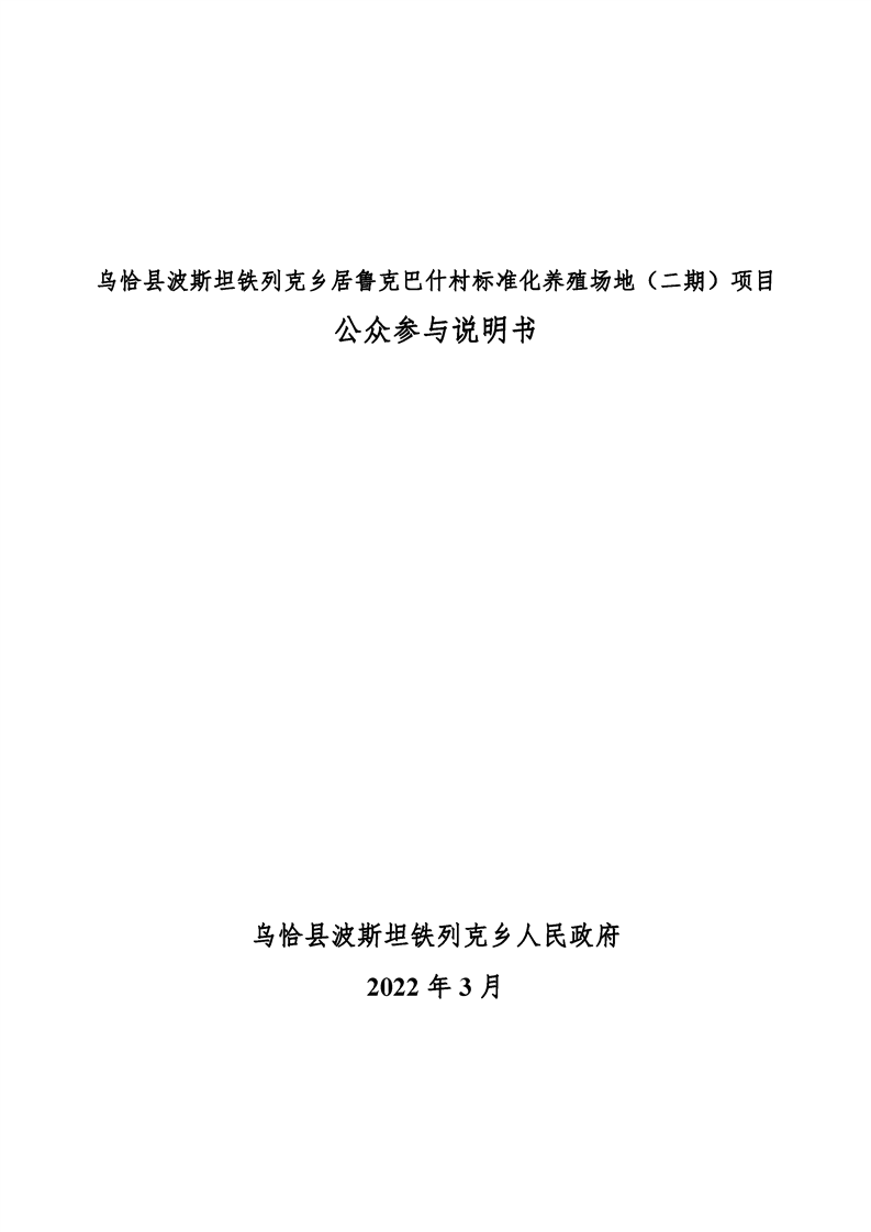 公众参与说明-乌恰县波斯坦铁列克乡居鲁克巴什村标准化养殖场地(二期)项目