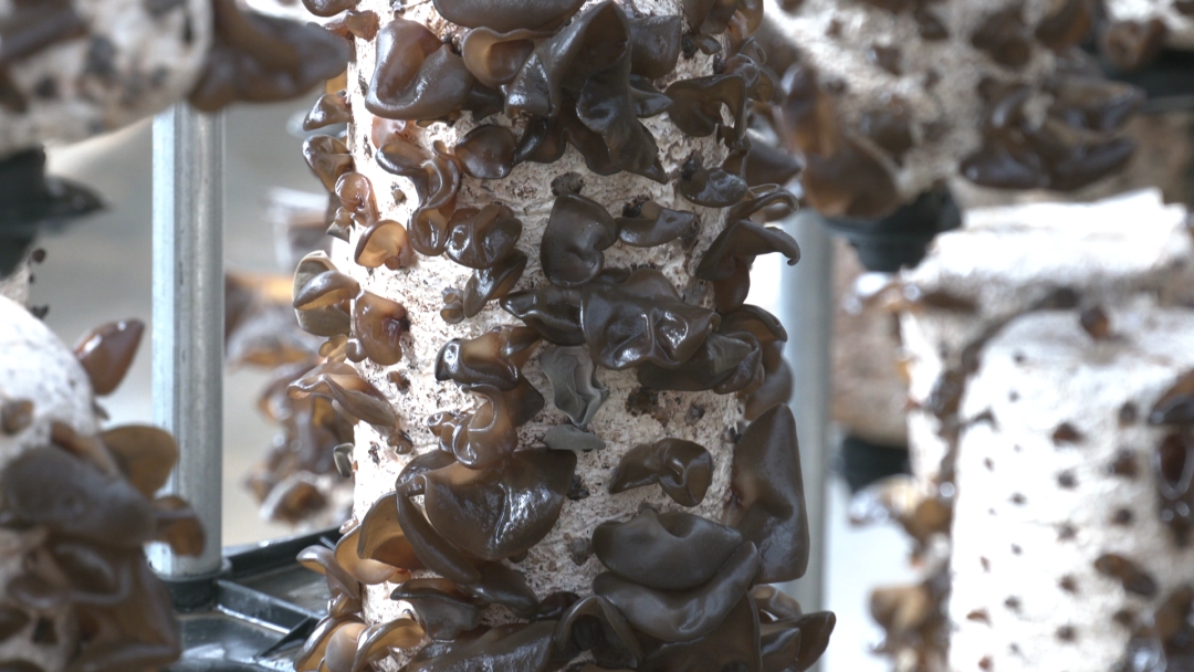 康凤云向记者介绍说:“在本次黑木耳试种中,我们做了两种尝试,一种是地摆,一种是吊袋立体栽培,目前看来,这两种栽培方式出得都非常特别地好,但是我建议还是采用吊袋立体栽培,因为这种方式占地面积更少,但产量和经济效益却很高。”