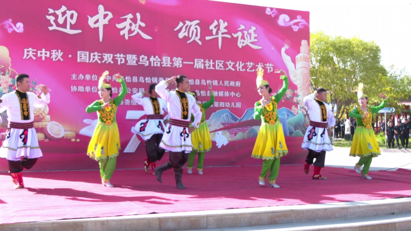 乌恰县“迎中秋·颂华诞”庆双节暨乌恰县第一届社区文化艺术节在县人民广场举行,各个社区居民、学生、社区民警组成的表演团队通过一首首赞歌、一支支舞蹈,掀起了庆祝活动的高潮。(全媒体记者:阿克力白克·马夏)