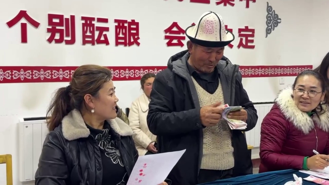 近日,在乌恰县黑孜苇乡坎久干村村委会会议室内,村“两委”正在为骆驼养殖合作社的成员们分红,25户村民以资金或骆驼的形式入股合作社,现在白马奶农民专业合作社的骆驼养殖规模已经扩大到60峰。村民哈依热提·木萨将自己家中的骆驼寄养合作社后,每年有稳定分红以外,自己也有时间外出务工。