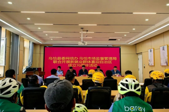 为庆祝新疆维吾尔自治区成立70周年,加强新就业群体的思想引领和凝聚服务,9月19日,乌恰县委社会工作部、县委网信办联合县市场监督管理局,在县总工会四楼会议室举办了以“暖‘新’相伴‘新’心向党”为主题的庆祝活动。通过表彰激励、思想引领、安全赋能、文化浸润等方式,团结和动员新就业群体为乌恰县高质量发展贡献力量。相关单位负责人及新就业群体代表参加此次活动。