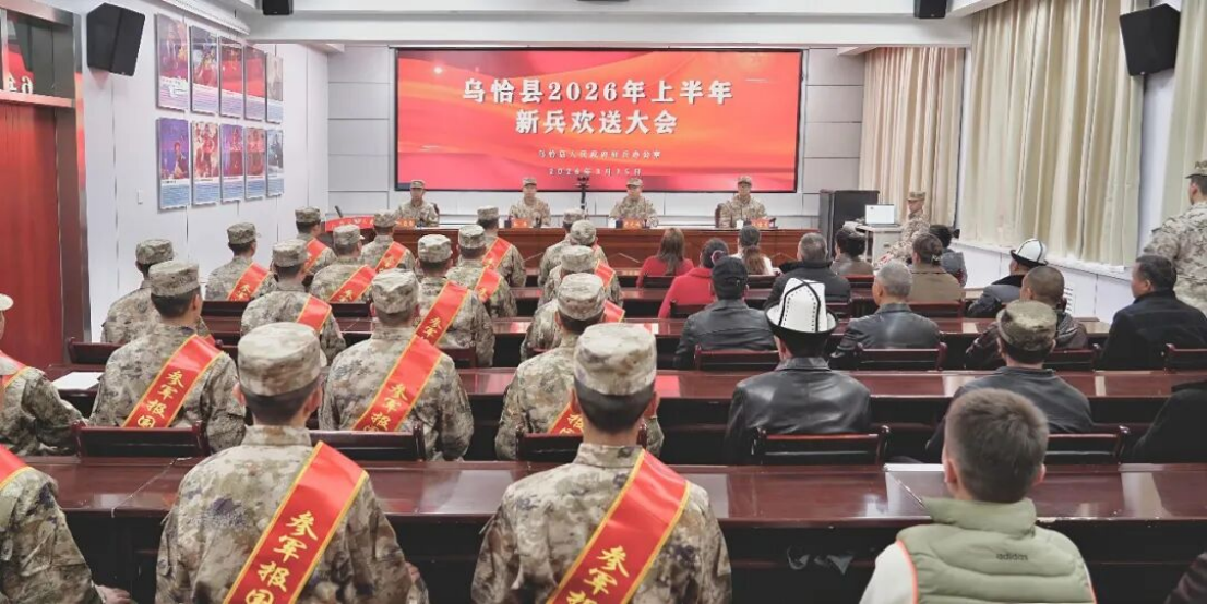 3月15日,乌恰县举行2026年上半年新兵欢送大会,热烈欢送20名即将奔赴军营、肩负保家卫国使命的应征入伍新兵。乌恰县委常委、人武部部长苟先桥及相关领导出席欢送大会。