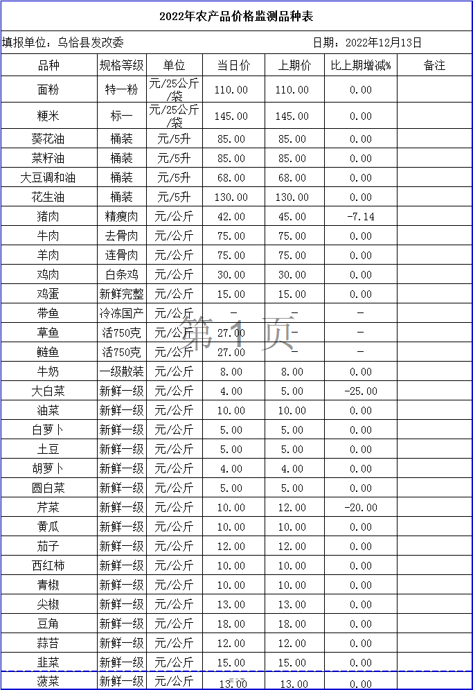 2022年农产品价格监测品种表12.14