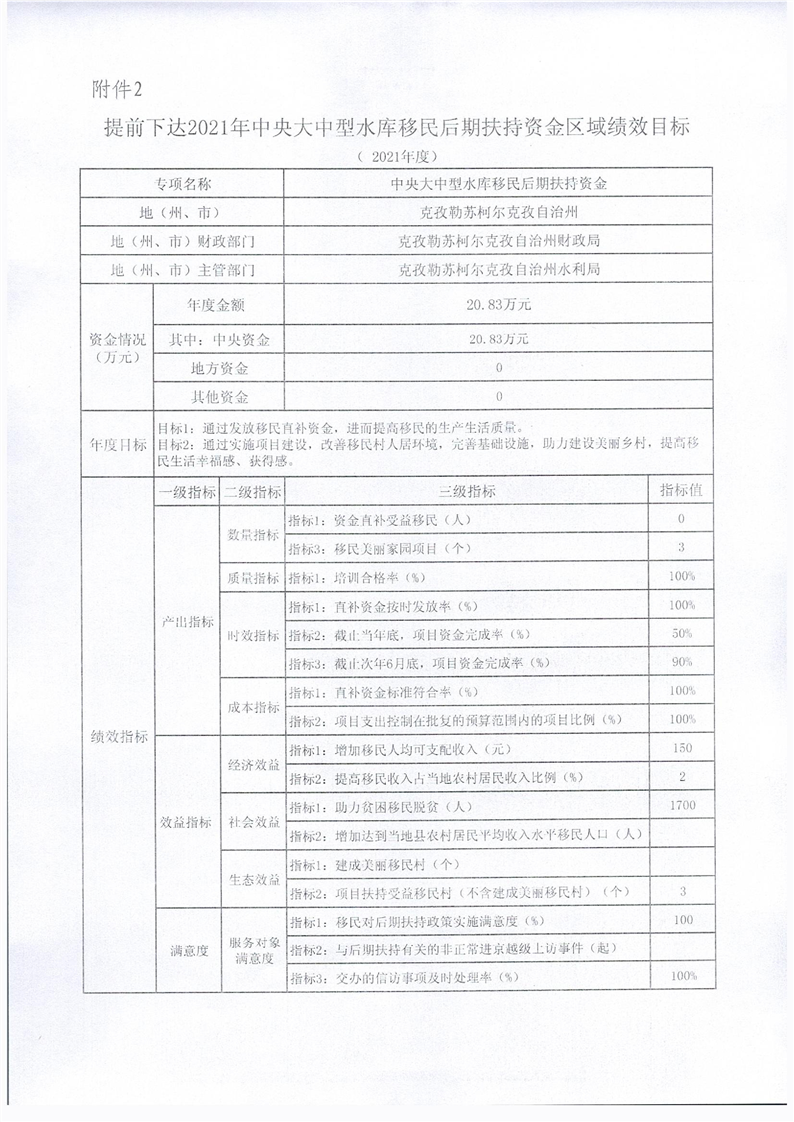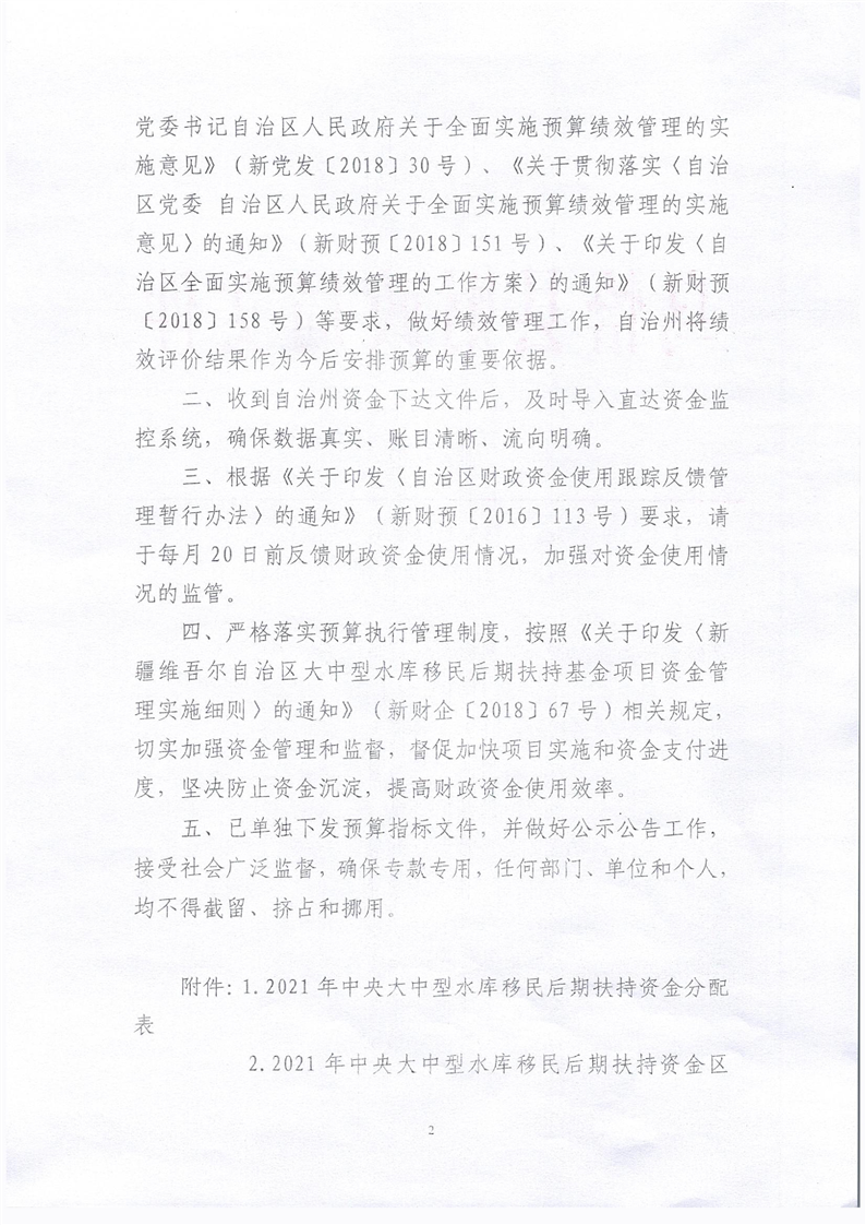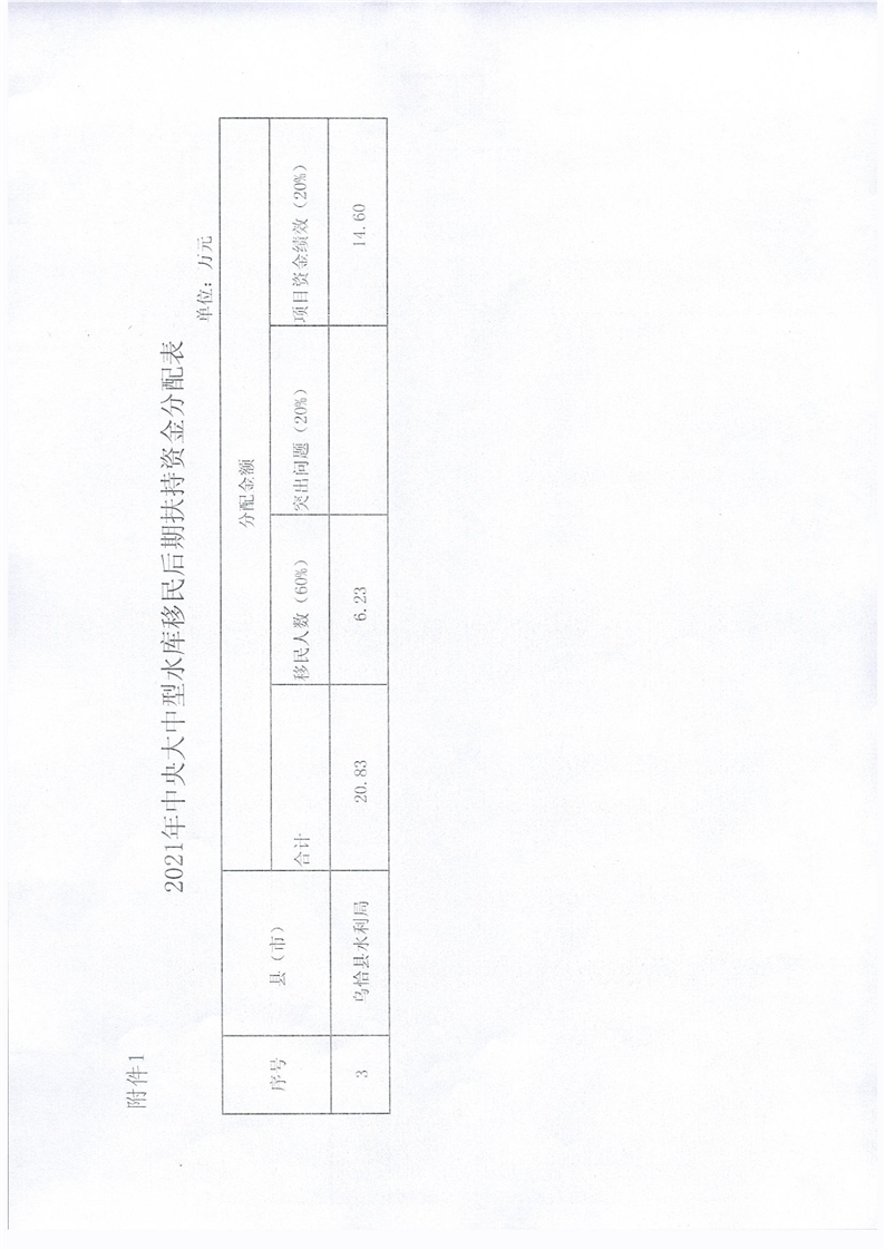 关于下达2021年中央大中型水库移民后期扶持资金预算的通知