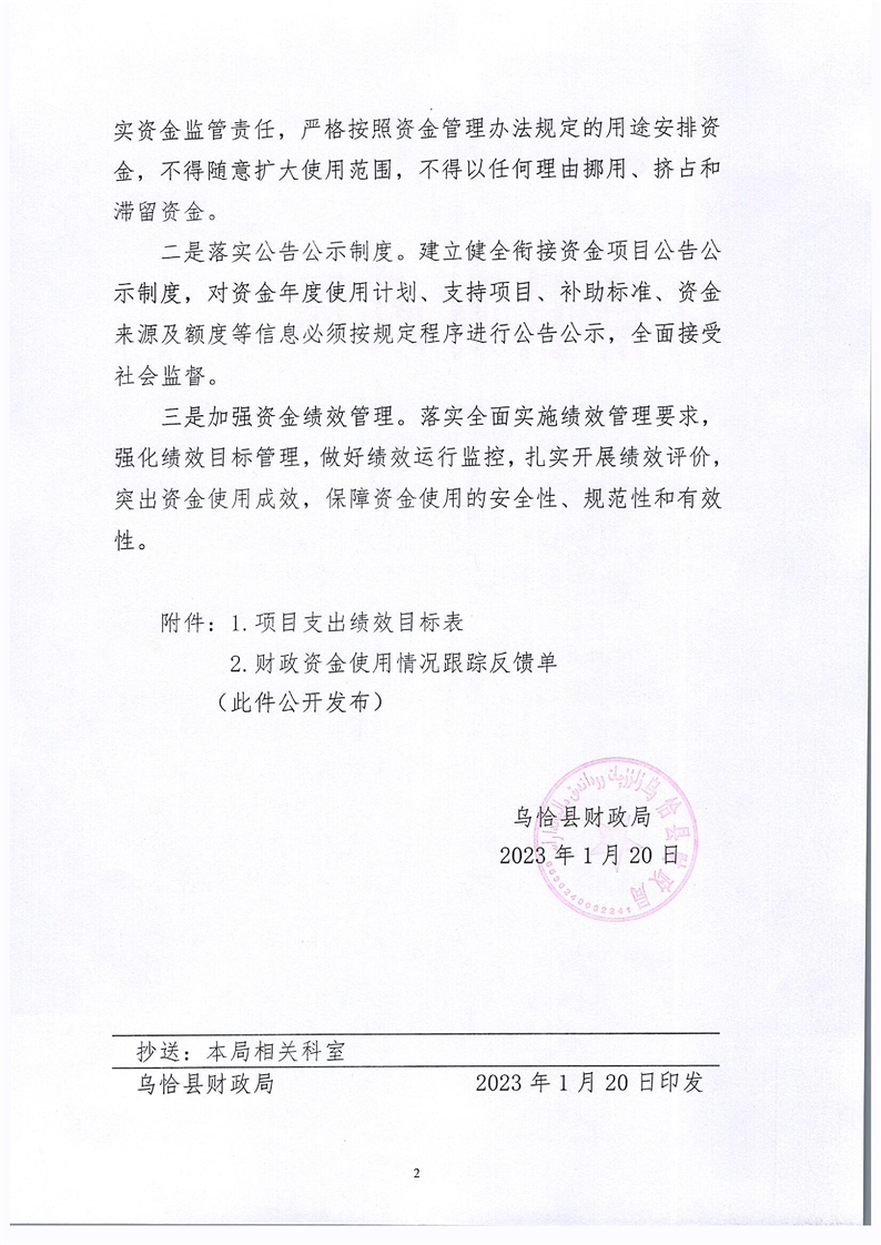 关于下达2023年县级地方配套财政衔接推进乡村振兴资金的通知