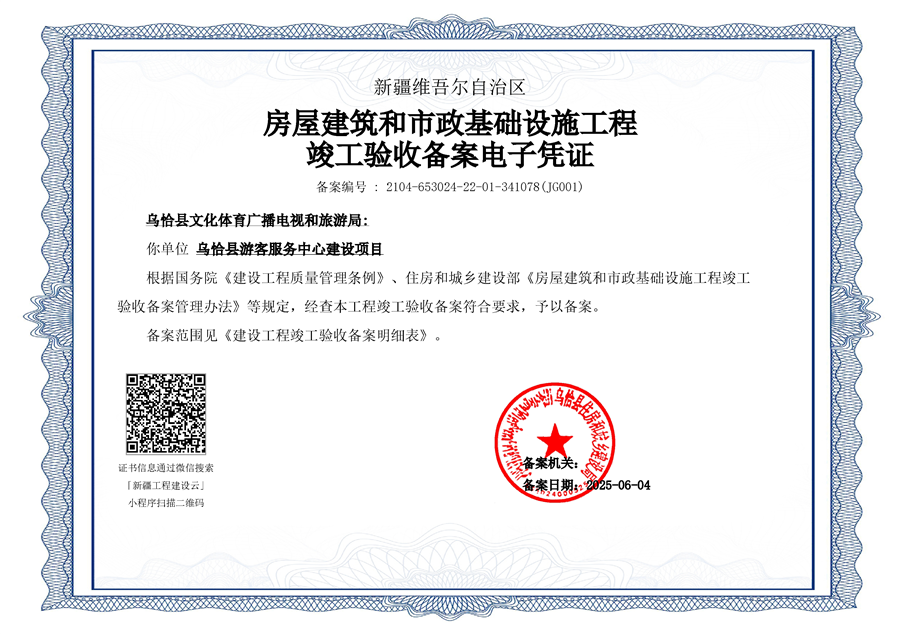 乌恰县游客服务中心建设项目竣工验收备案电子凭证