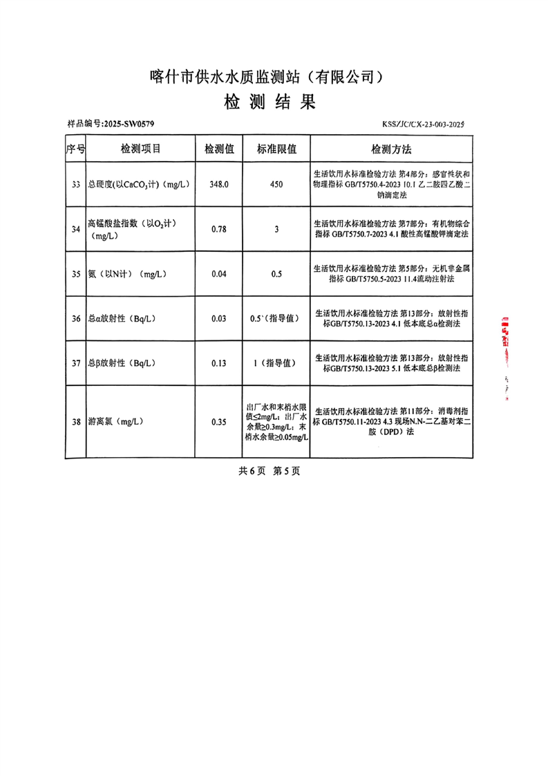 乌恰县2025年9月水质检测报告
