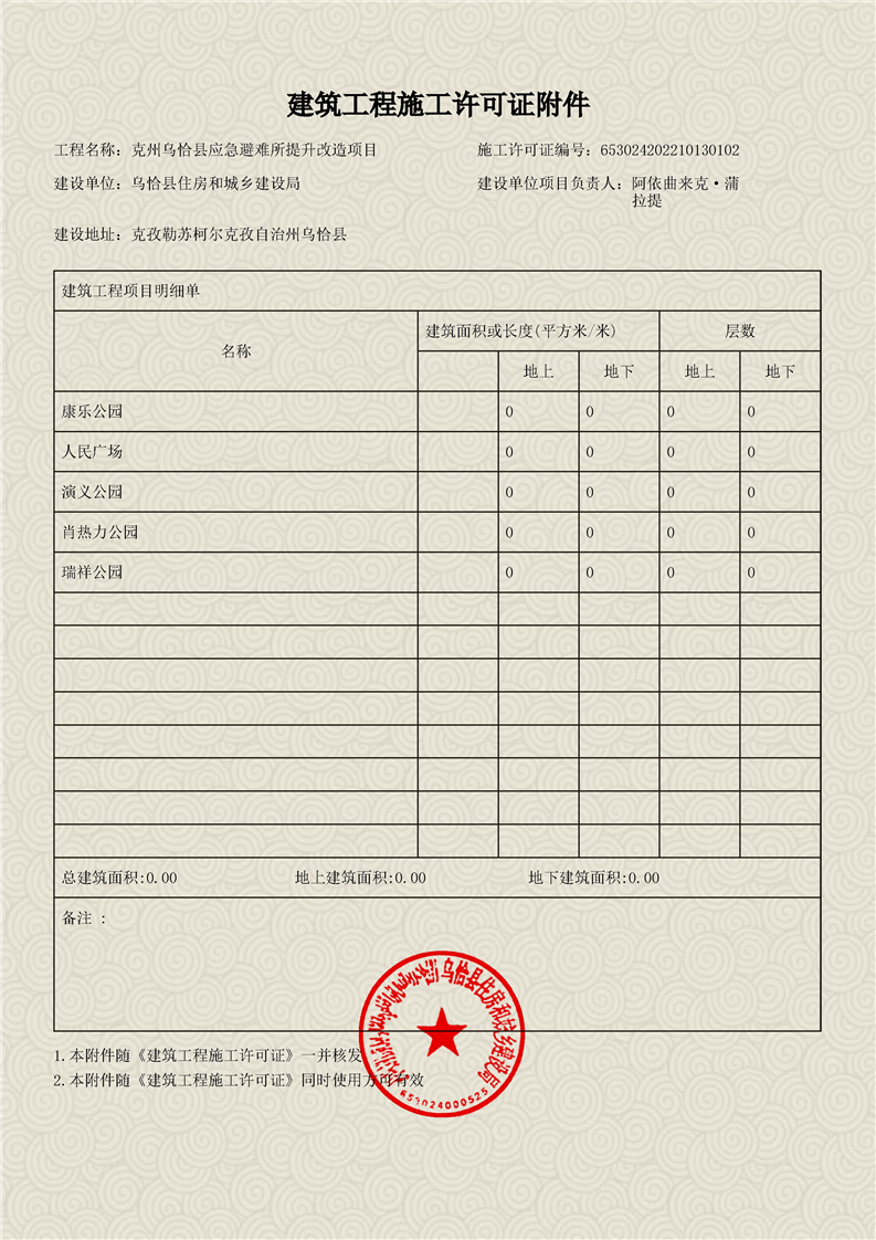建筑工地施工许可证-克州乌恰县应急避难所提升改造项目