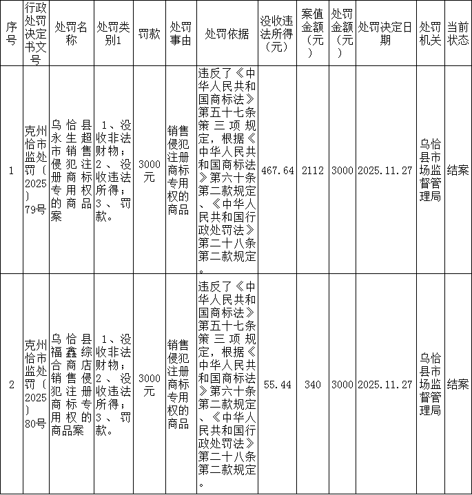 2026年乌恰县市场监督管理局行政处罚案件(1月)