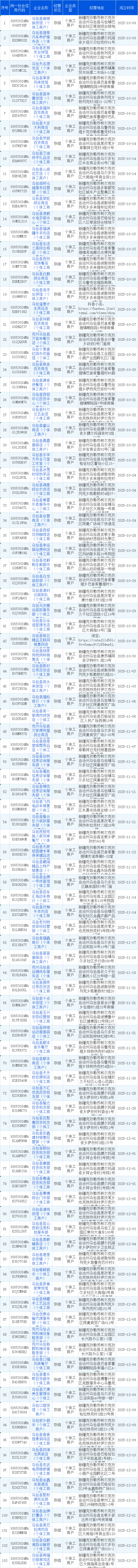 乌恰县市场监督管理局2025年第四季度个体工商户设立名单
