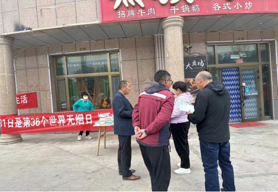 工作人员通过悬挂横幅,发放宣传单、健康咨询、发放控烟宣传折页,商铺、个人诊所、食堂等公共场所张贴控烟标志、向过往群众宣传“吸烟的危害”等控烟核心信息等形式进行宣传,呼吁广大群众为了自己及家人的健康,不要在室内、公共场所吸烟,共同营造健康、清洁、无烟的就诊及生活环境。