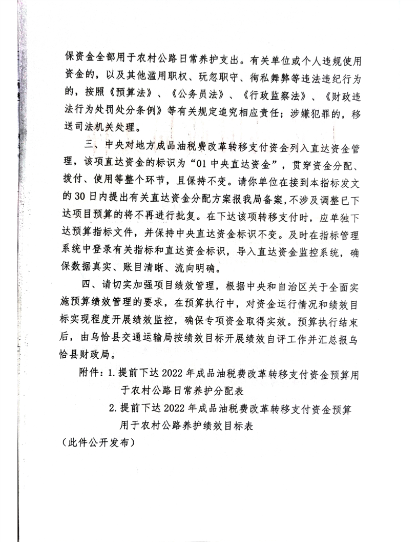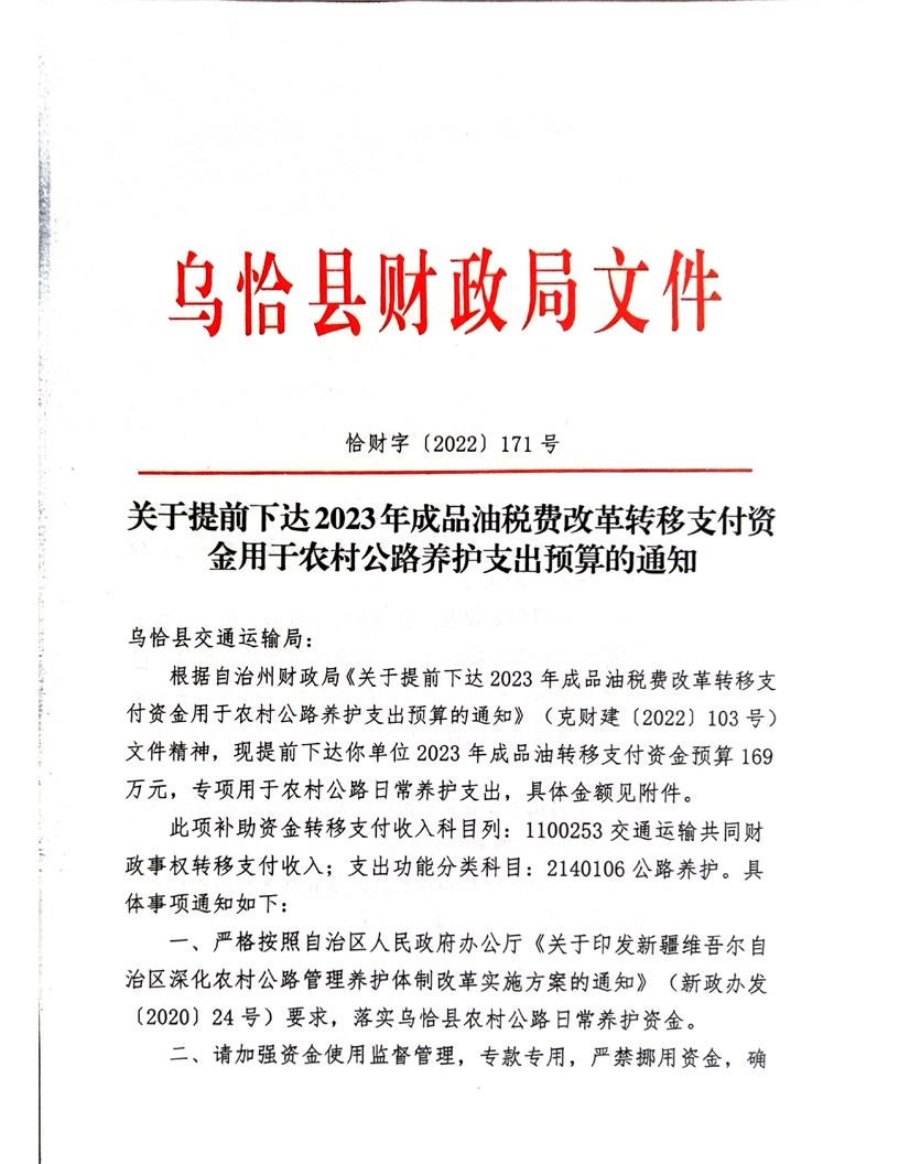 关于提前下达2023年成品油税费改革转移支付资金用于农村公路养护支出预算的通知