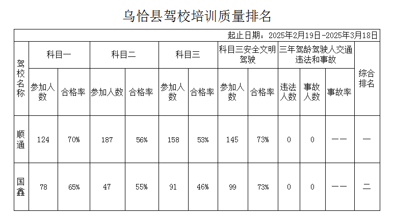 乌恰县驾培机构2025年3月份培训质量排名公示