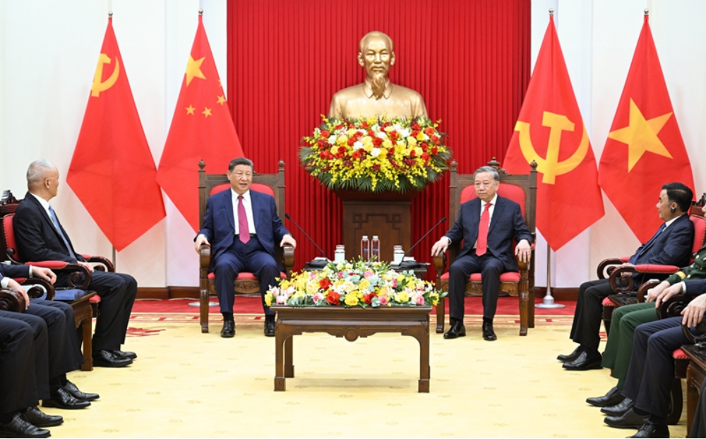 习近平指出,很高兴对越南进行国事访问,实现同苏林总书记的首轮互访。今年是越南共产党成立95周年、越南建国80周年和南方解放50周年,我代表中国共产党和中国政府向越方致以热烈祝贺。中方将一如既往支持越南走好符合本国国情的社会主义道路,胜利召开2026年越共十四大,朝着建党建国“两个一百年”奋斗目标不断迈进。