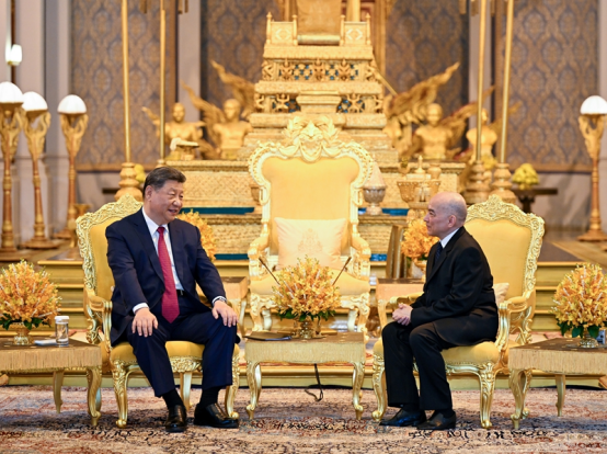 习近平强调,中方珍视同柬埔寨王室的友谊,高度评价多年来柬王室为中柬友好事业作出的重要贡献。新形势下,中柬双方要珍惜并传承中国老一辈领导人和西哈努克太皇共同缔造的中柬铁杆友谊,赋予中柬命运共同体新的时代内涵,服务各自国家发展和人民福祉,为构建周边命运共同体、推动构建人类命运共同体作出更大贡献。中方坚定支持柬埔寨保持稳定、加快发展、改善民生,走符合本国国情的发展道路,相信中国式现代化将为柬埔寨等周边国家带来更多机遇,相信构建新时代全天候中柬命运共同体一定会谱写壮丽篇章。