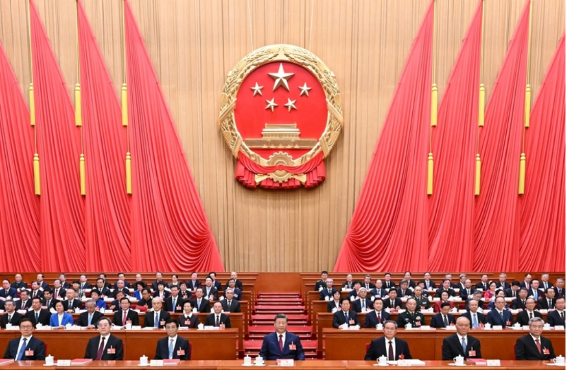 3月12日下午,第十四届全国人民代表大会第四次会议在北京人民大会堂闭幕。党和国家领导人习近平、李强、王沪宁、蔡奇、丁薛祥、李希、韩正等在主席台就座。新华社记者 谢环驰 摄