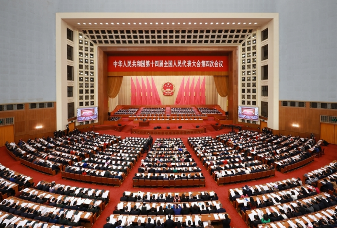 新华社北京3月5日电 第十四届全国人民代表大会第四次会议5日上午在北京人民大会堂开幕。全国人大代表肩负人民重托出席大会,履行宪法和法律赋予的神圣职责。