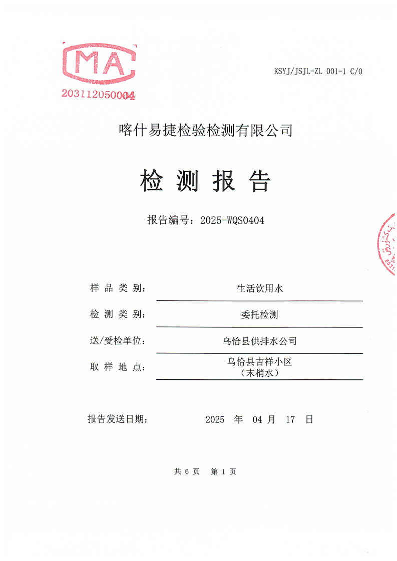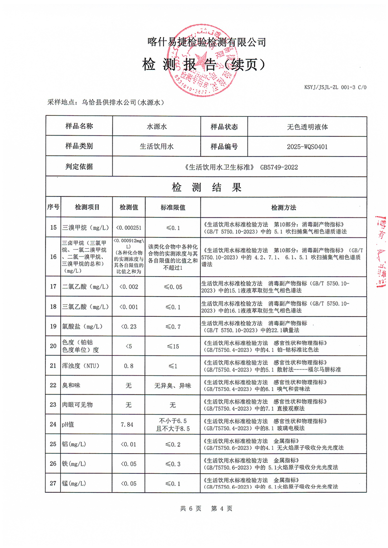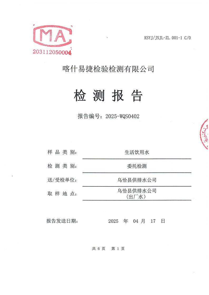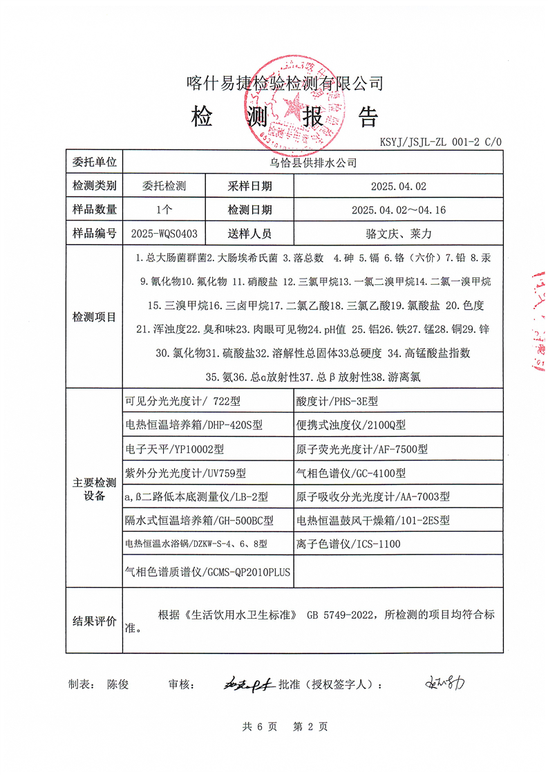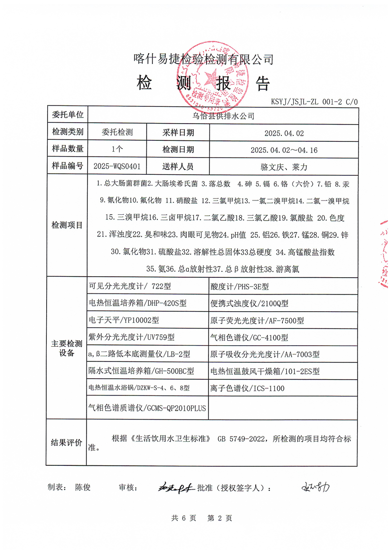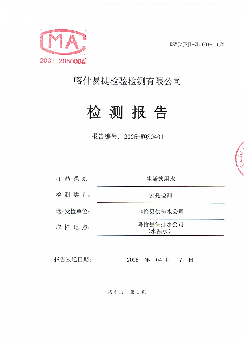 2025年4月乌恰县水质检测报告