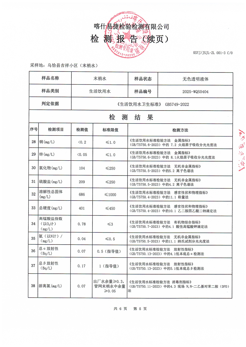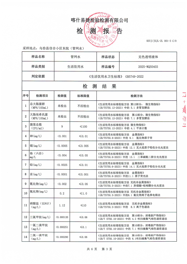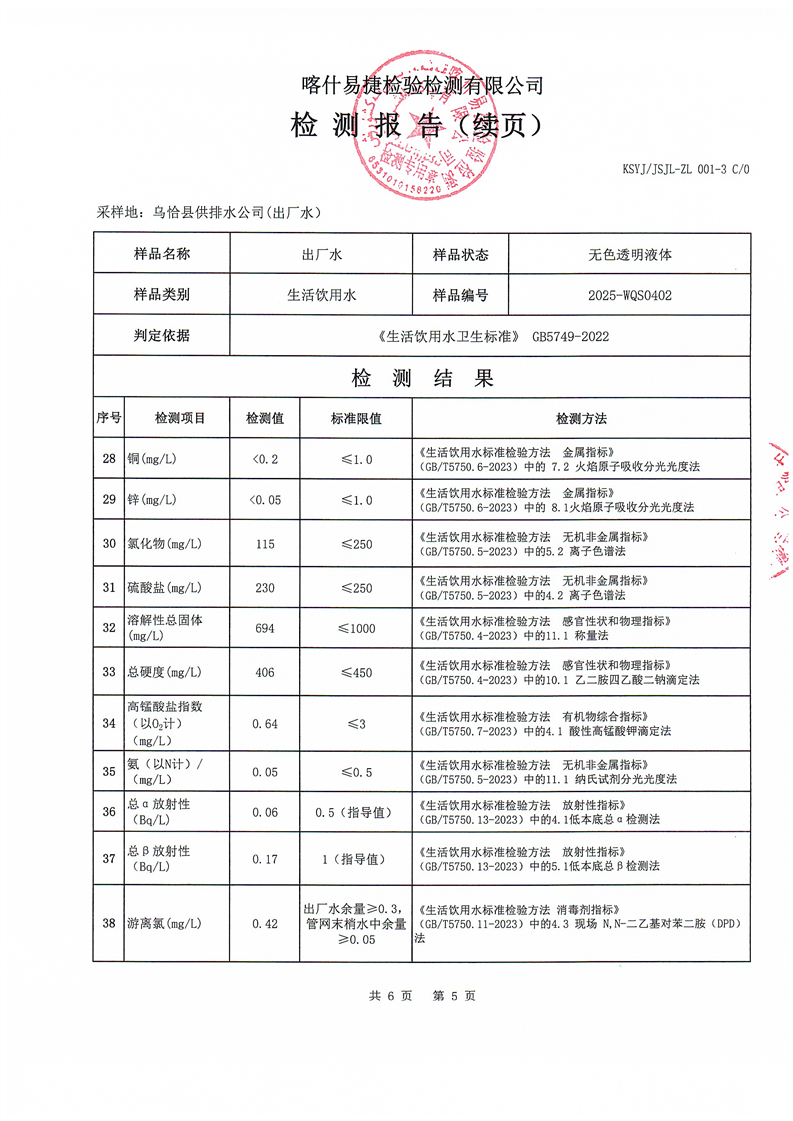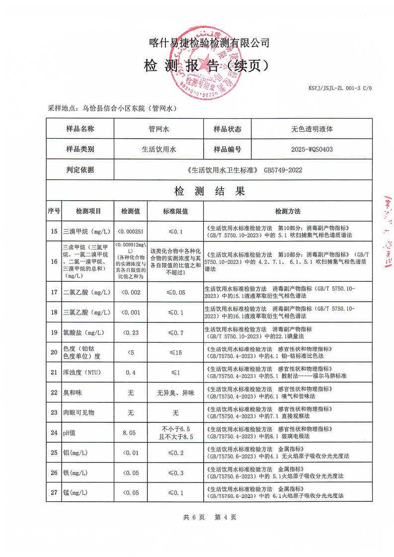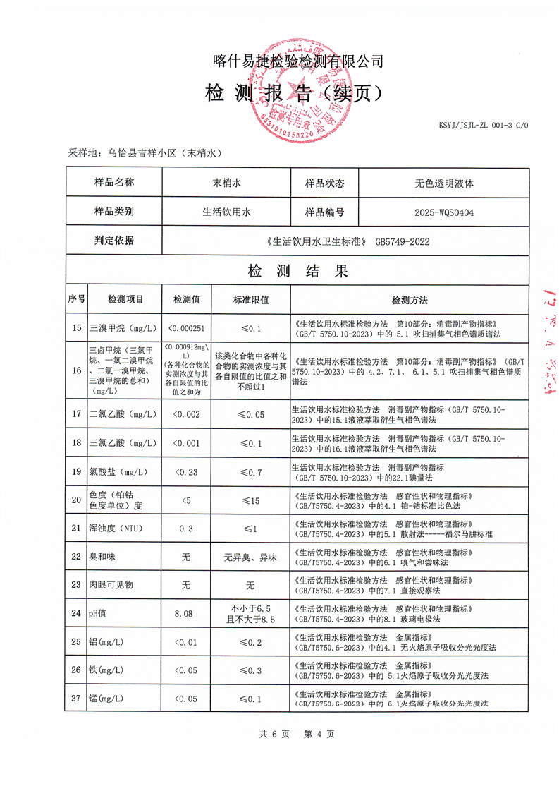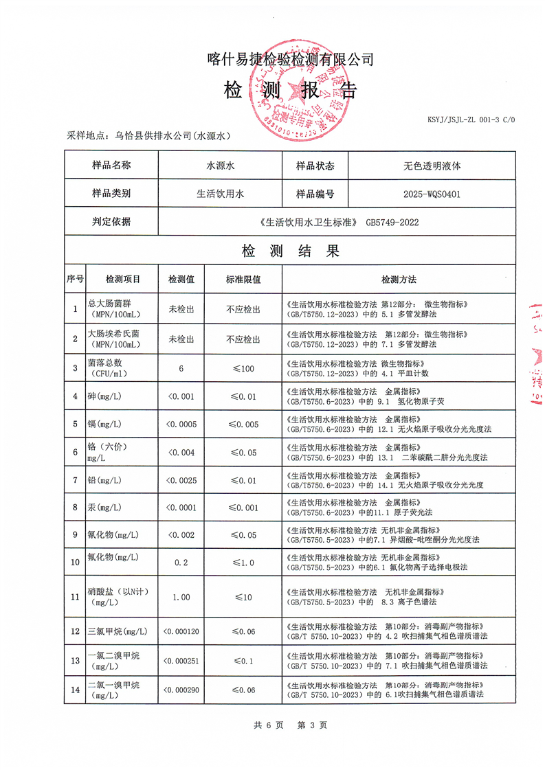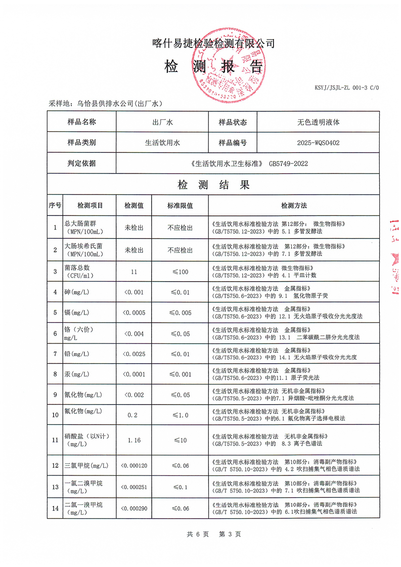 2025年4月乌恰县水质检测报告