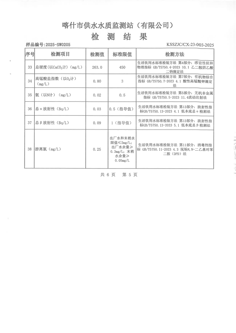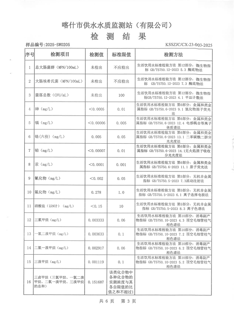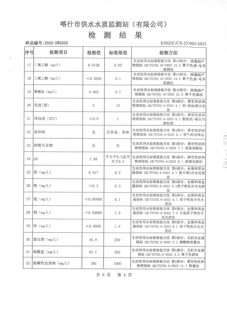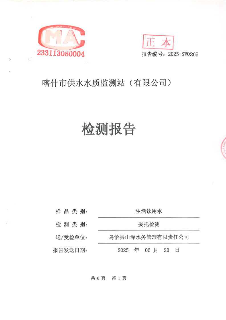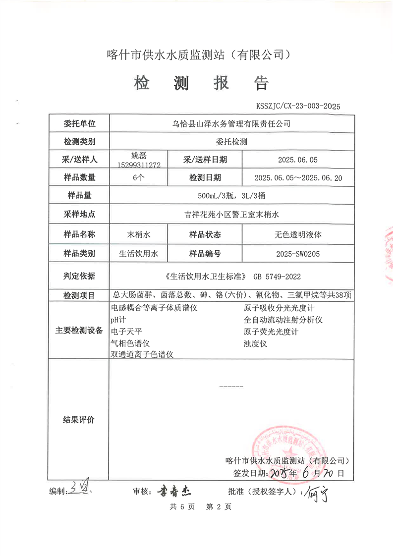 2025年6月乌恰县水质检测报告(吉祥花苑小区警卫室末梢水)
